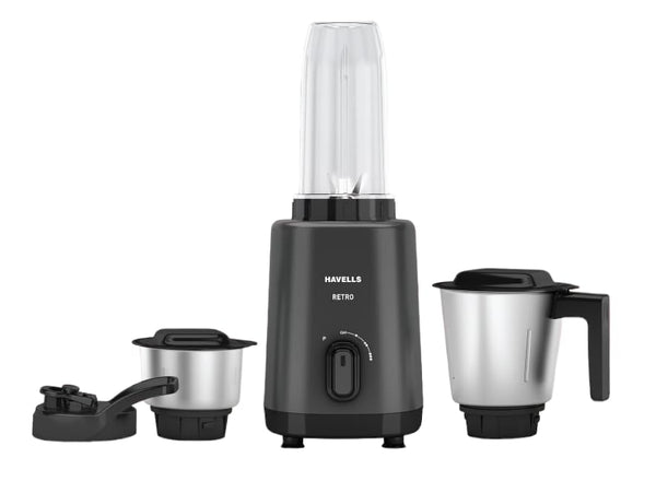 Havells Retro Nutri-Xl 500 Watts 3 Jar Mixer Grinder|21000Rpm| RoHS Complaint | 600Ml Nutri Jar with Sipper Lid | 1L Dry/Wet Grinding Jar |2Yr Product & 5Yr Motor Manufacturer Warranty (Black)