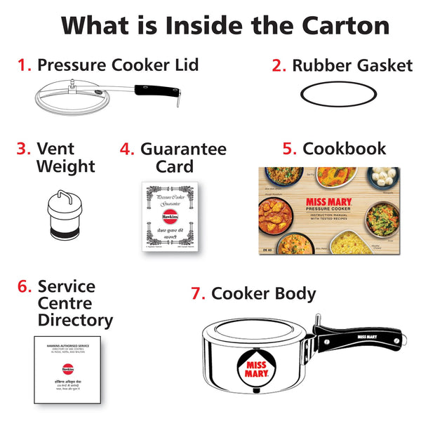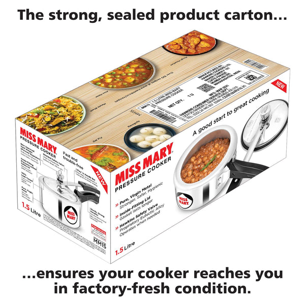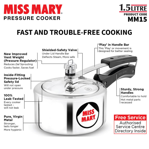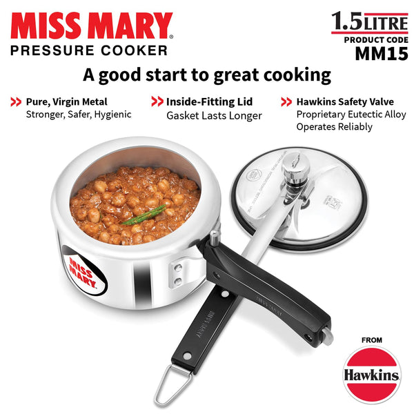Hawkins 1.5 Litre Miss Mary Aluminium Pressure Cooker, Small Inner Lid Cooker, Silver (Mm15), 1.5 Liter