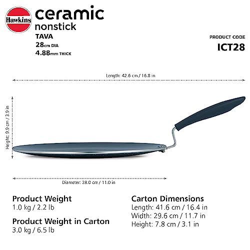 Hawkins Ceramic Nonstick Tava, 28 cm Diameter, Induction Paratha Tawa, Granite Griddle (ICT28)