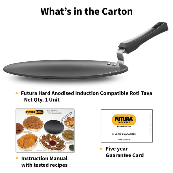 Hawkins Futura 28 cm Roti Tava, Hard Anodised Tawa, Induction Tawa, Black (IART28)