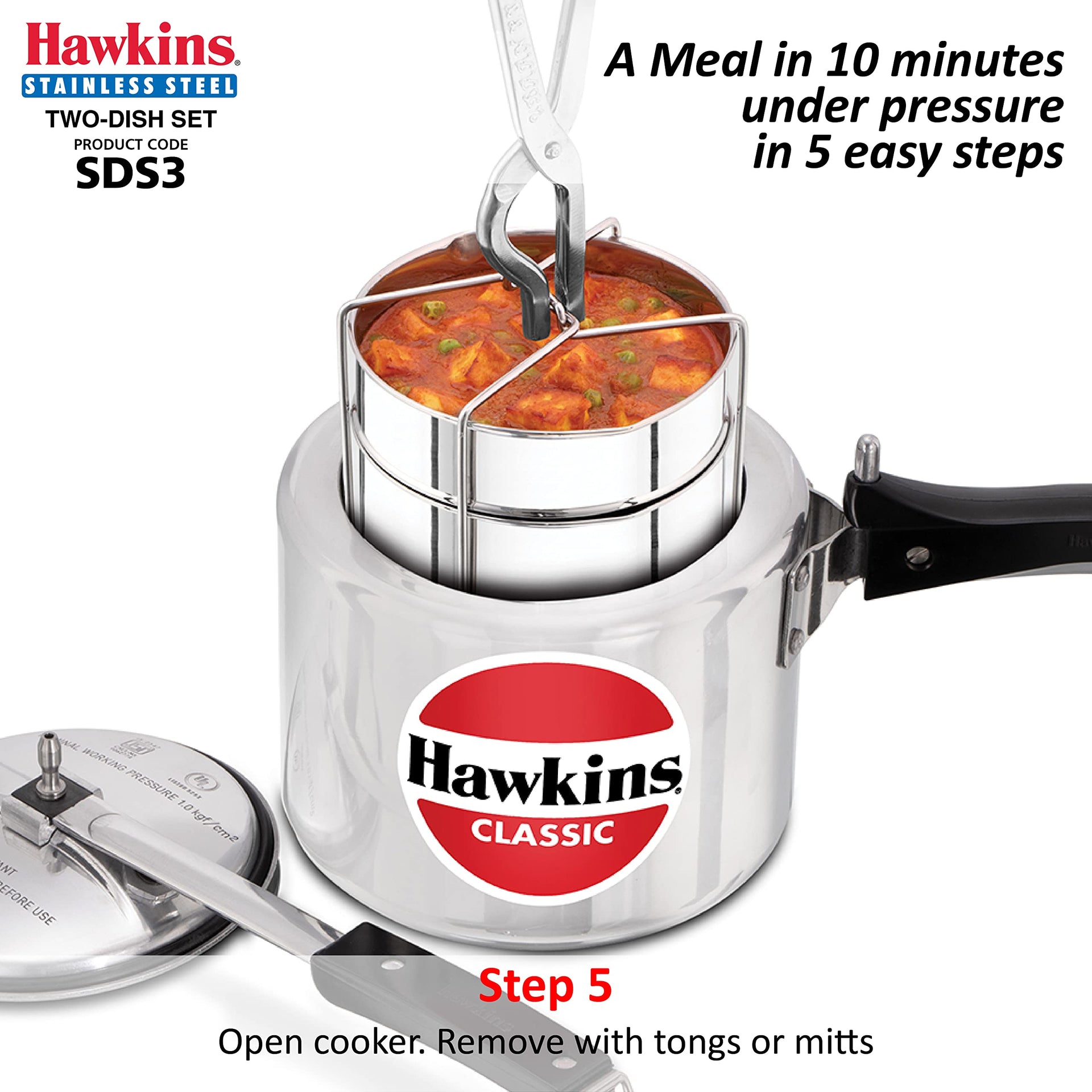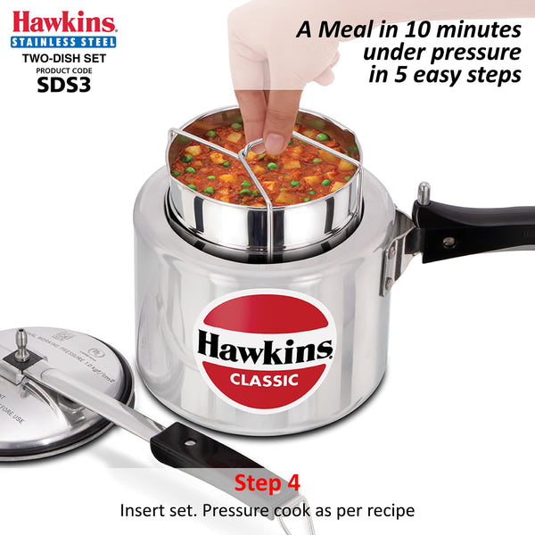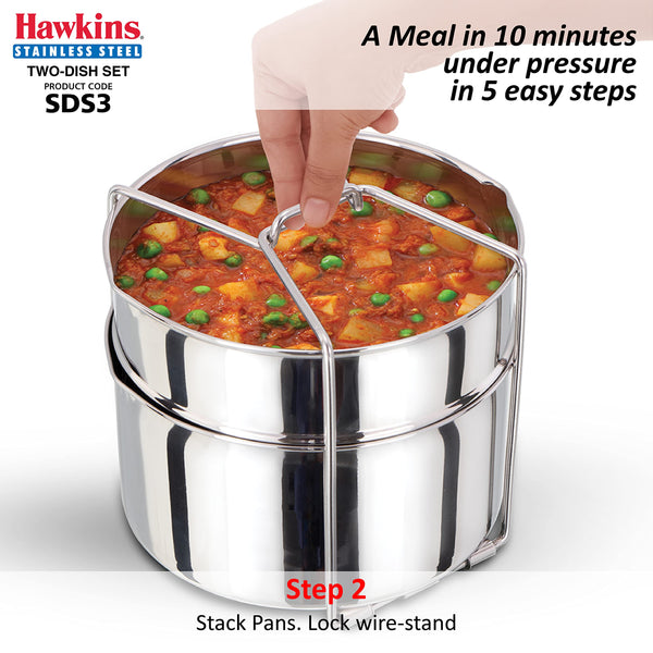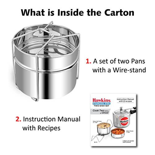 Hawkins Two-Dish Stainless Steel Set, Cooker Separator, Pressure Cooker Pots, Silver (SDS3), 1.275 liters