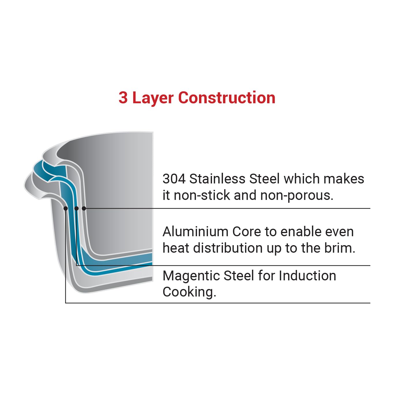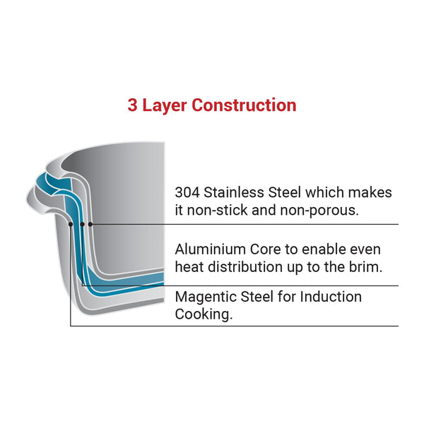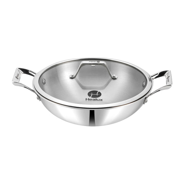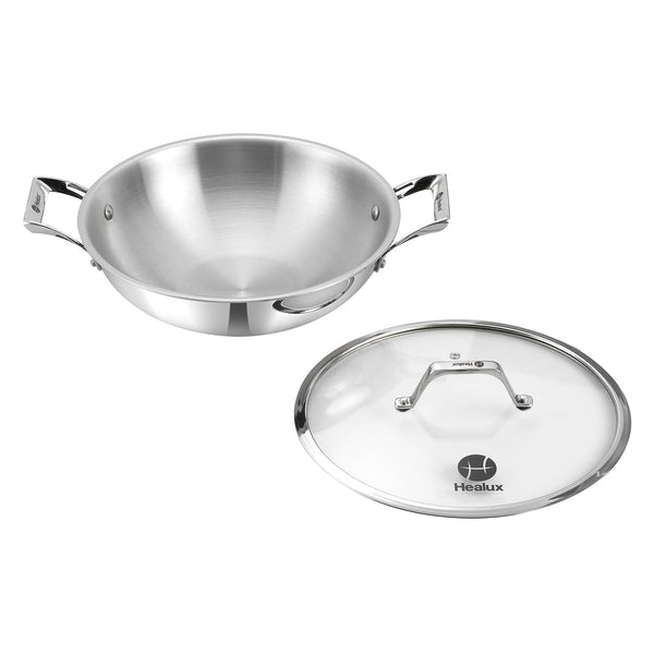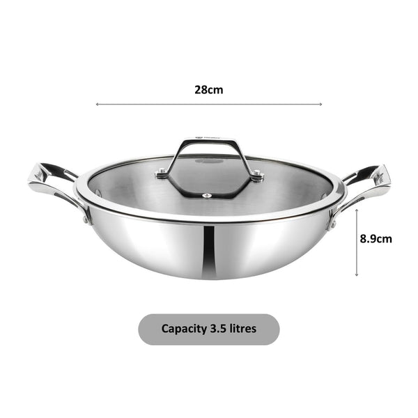 Healux 28cm Tiana Triply Wok with Glass Lid - 3.5L