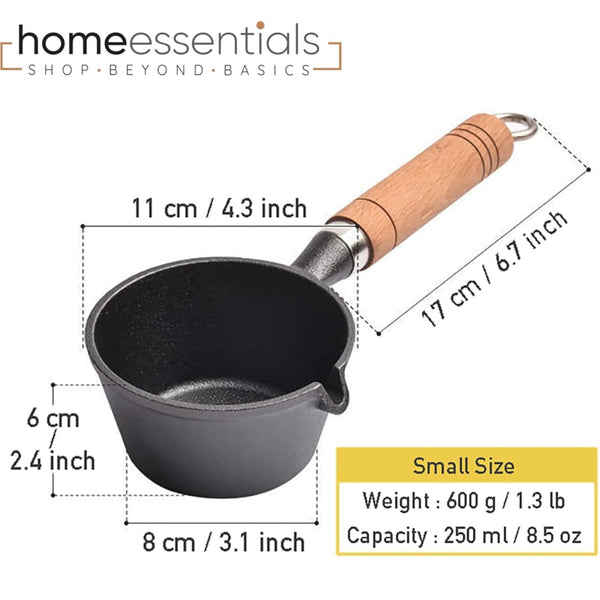 Home Essentials Cast Iron Tadka Pan/Vaghar/Chounk/Baghar for Frying Dal/Spices | 4Inch, 450gm, Gas & Stove-Friendly | Pre-Seasoned, 100% Toxin-Free, Naturally Non-Stick Tempering Pan (Round)