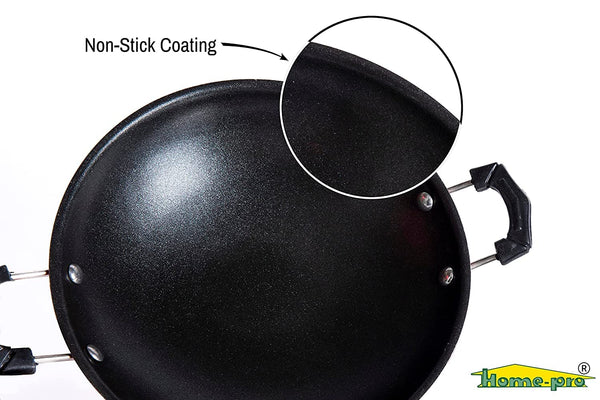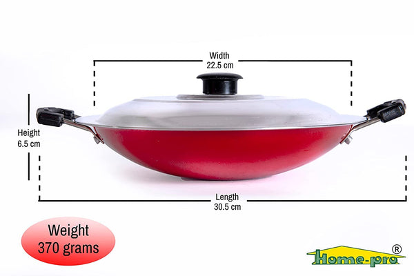 Home-pro Non-Stick Aluminium Appachetty with Steel Lid, Deep Round Bottom Appachatti, Appachatty with Steel Lid, Residue Free, Red