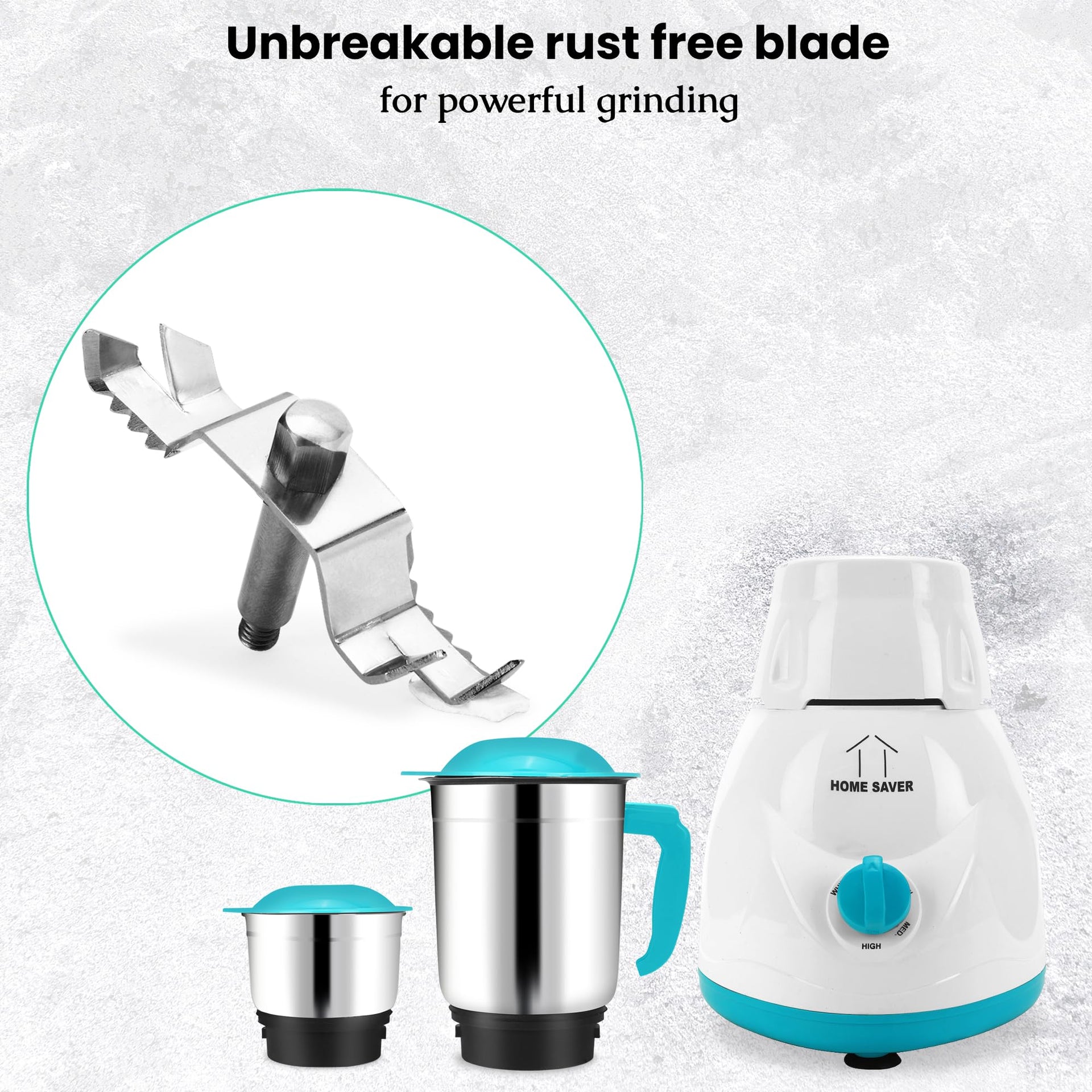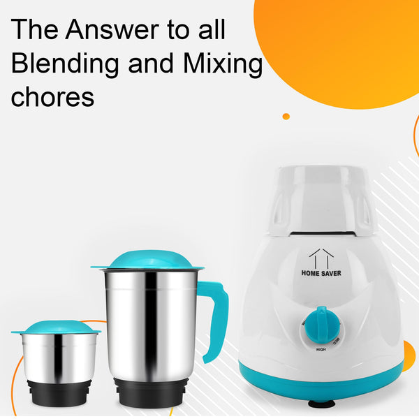 HOME SAVER 550watt HeavyDuty Mixer Grinder With 2 Sharp Stainlees Steel Jar Set For Kitchen Grinding and Mixing | CD Green Mixer Grinder with 2 Multipurpose Jars Set | 1 Year Warranty