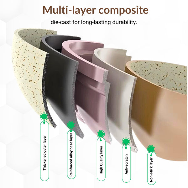 HomeEssentials Non Stick Maifan Stone Frying Pan - Fry Pan with Lid & Wooden Handle/Pre Seasoned 5 Layer Maifan Medical Stone Pan/All Gas & Induction Compatible/Chemical Coating Free,2.2 Litre