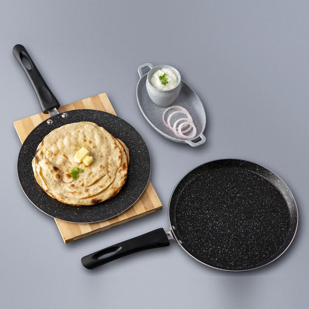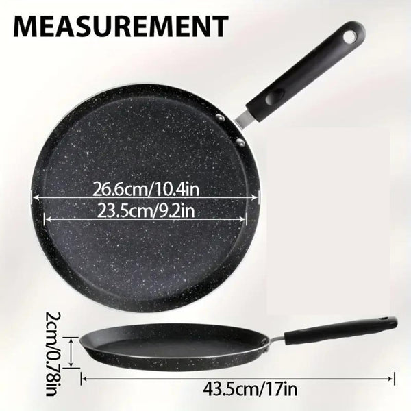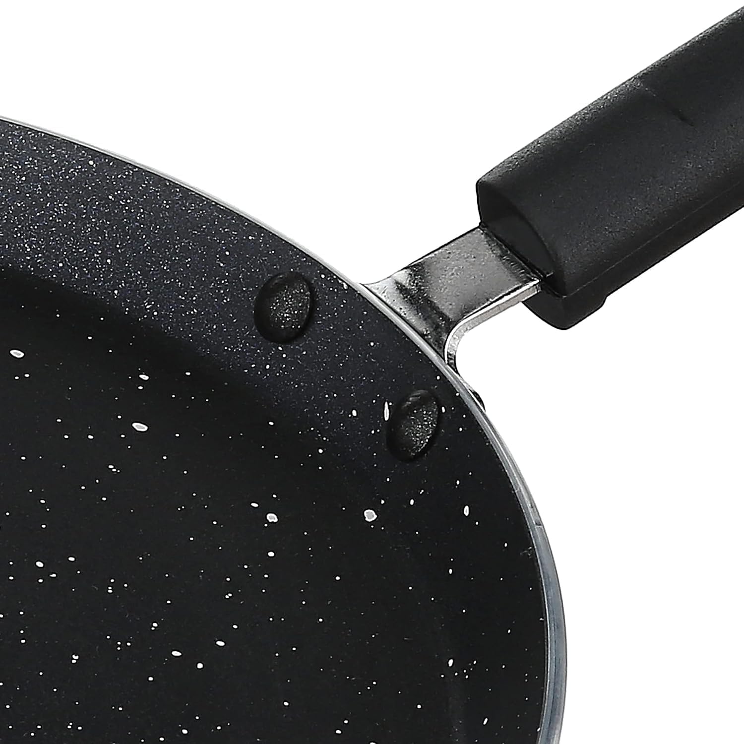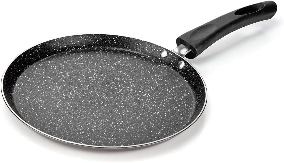 HOMETIC Non-Stick Granite Crepe Pan - Effortless Food Release, Induction Ready, PFOA & PTFEs Free, Perfect for Roti, Egg Omelet, Tortilla, Tawa, Dosa, and Flat Frying - Durable, Easy Cleaning. (BLACK)