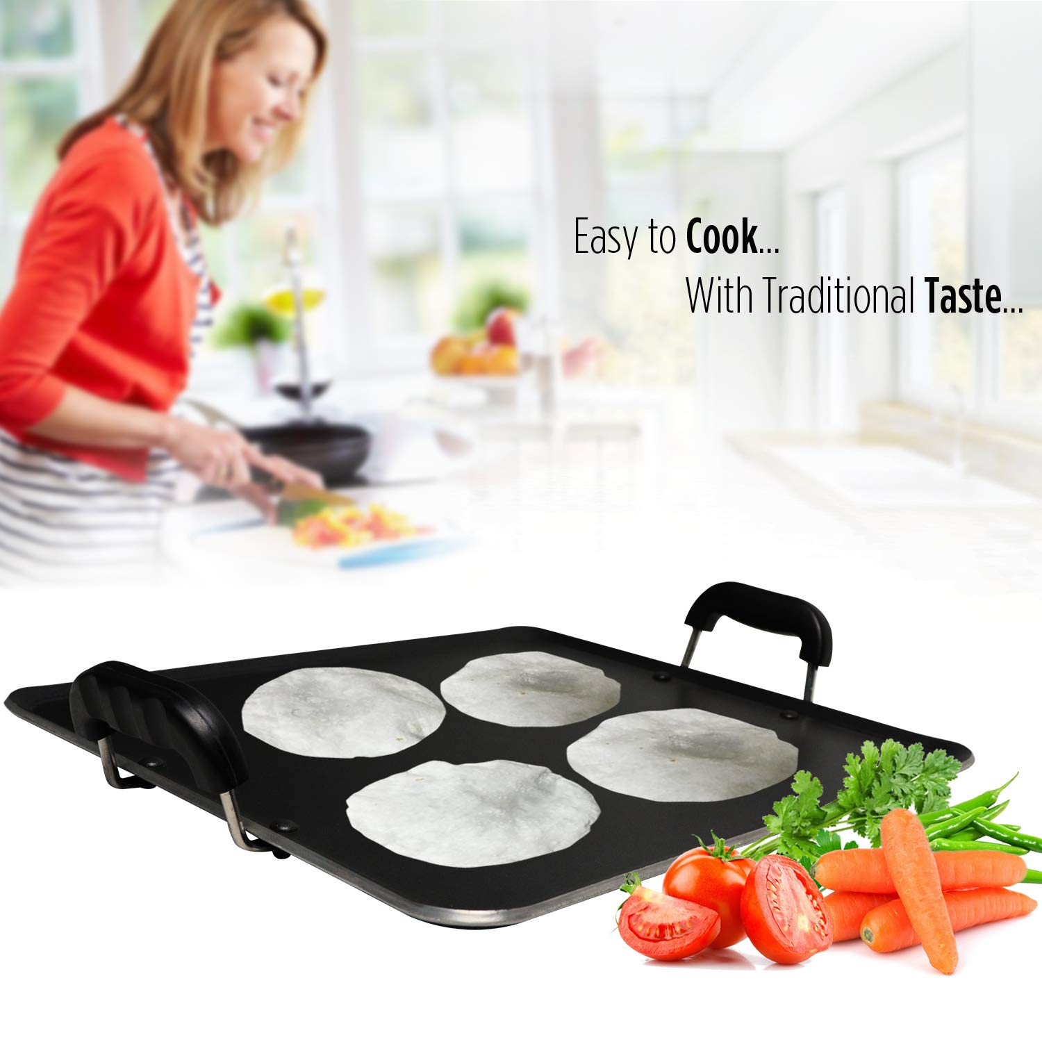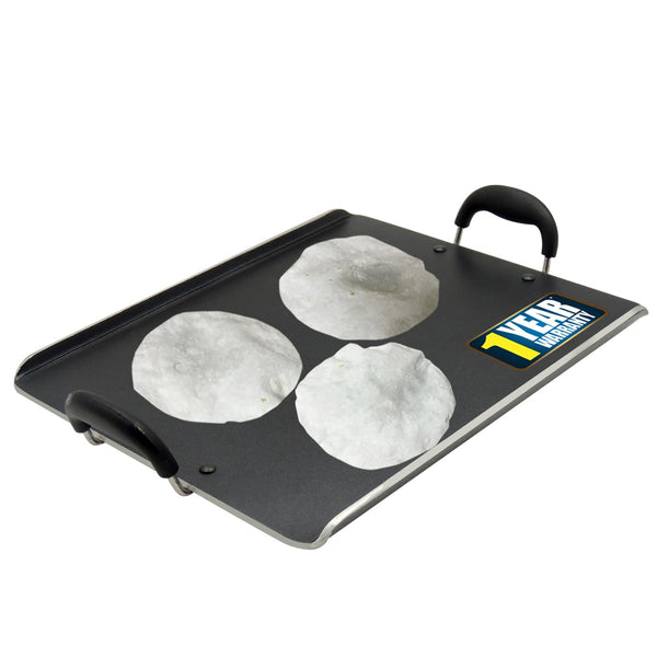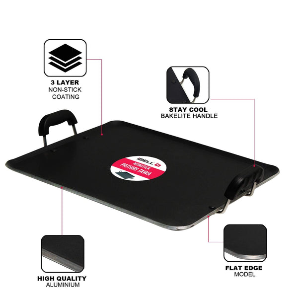 IBELL 3833DLX Non Stick Tawa, Dosa Roti Chapati Pathiri Tawa, Large Rectangular Aluminium Body with Bended Edge, 37.5cm x 31.5cm with 5mm Thickness (Black)