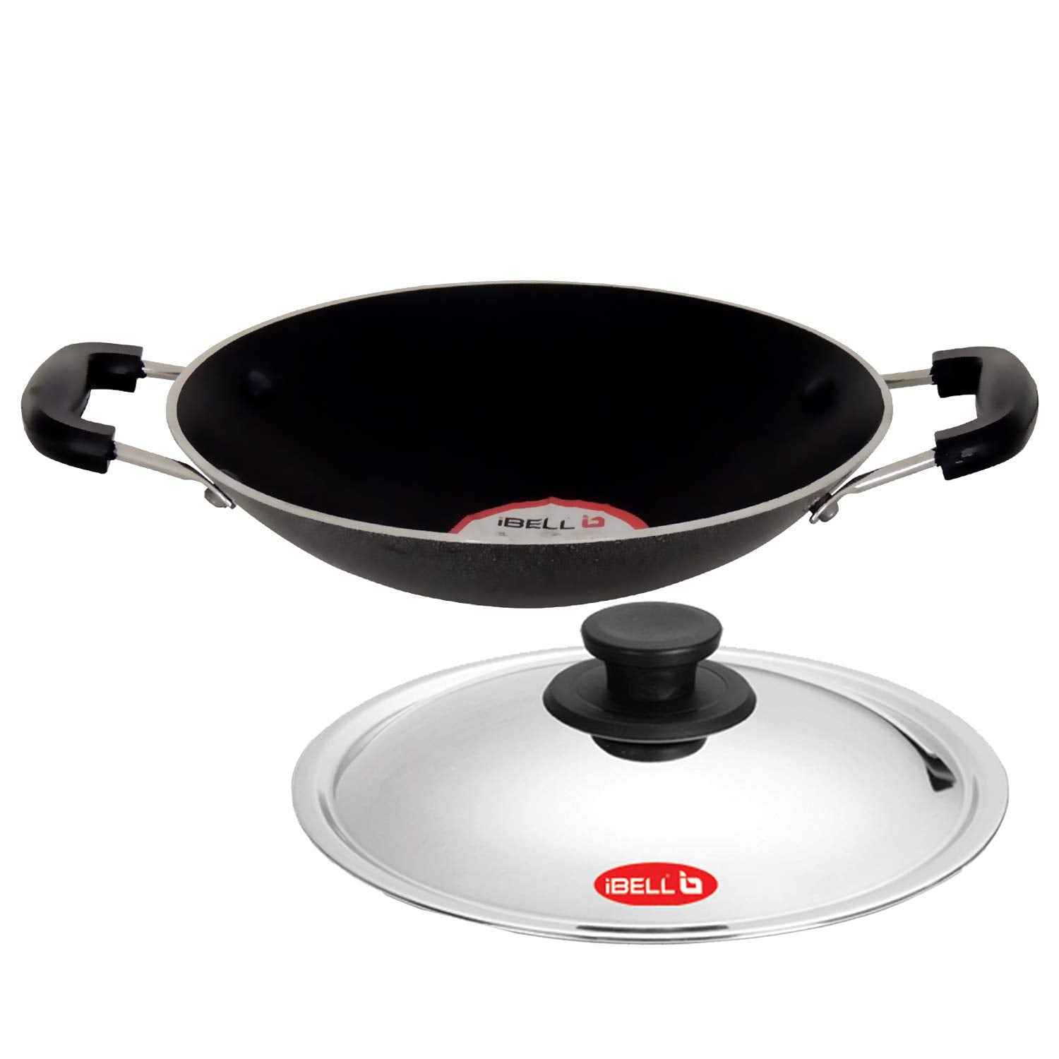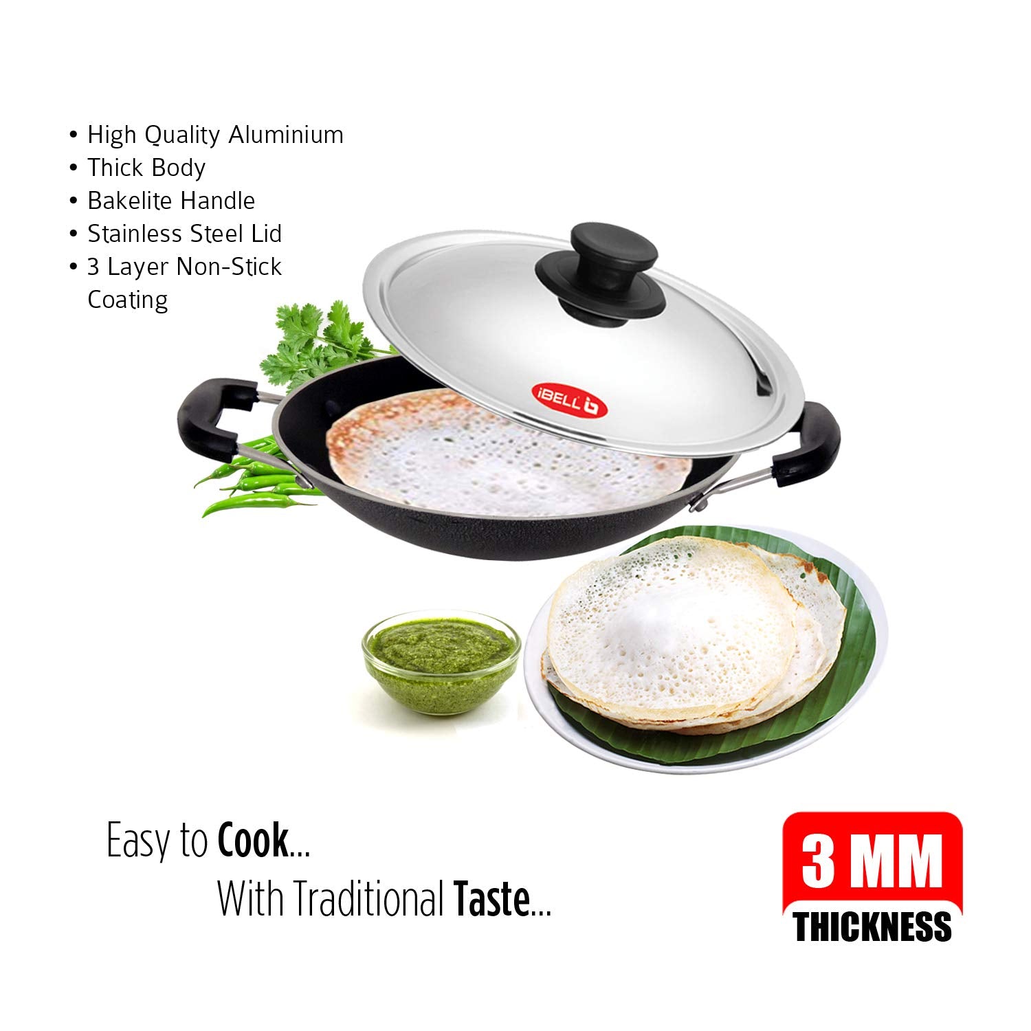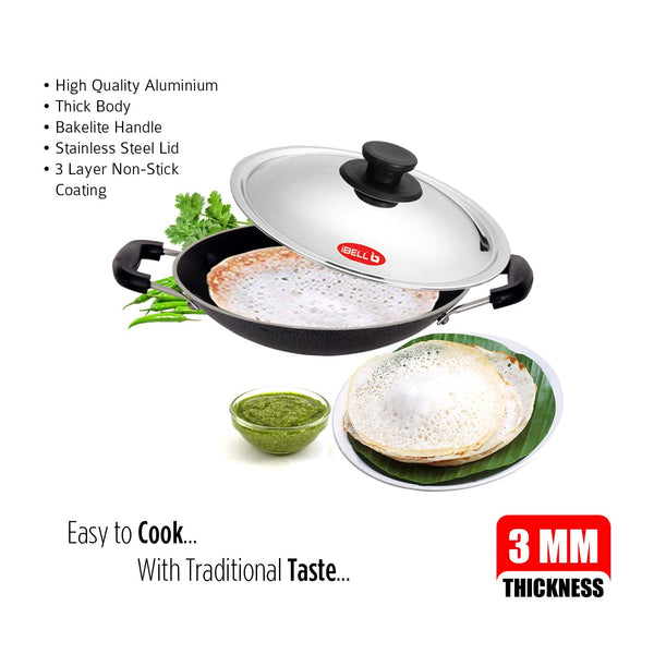 IBELL Premium Non-Stick Aluminium Appam Pan with Lid, Appachatty, 200mm, Silver