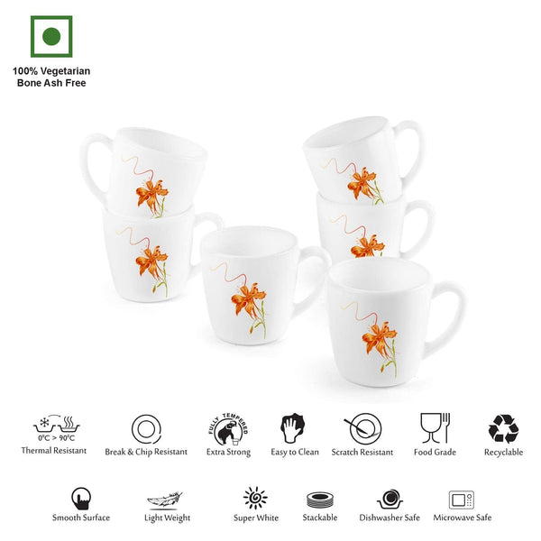 Imperial Orange Lily Ricca Mugs, 6 Pieces