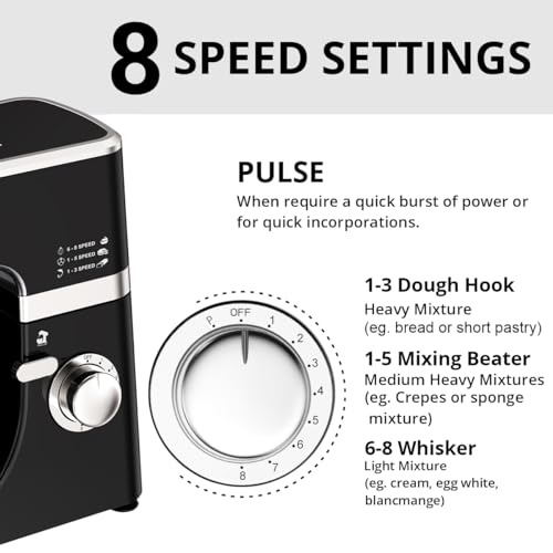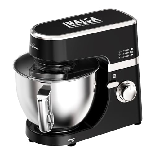 INALSA Stand Mixer 1200W|Pure Copper Motor|5.3L SS Bowl With Splash Guard|Metal Gears for Extra Durability|Accessories Included|Dishwasher Safe|Baking,Cake Mixer,Kneading-Kratos Plus (Black)