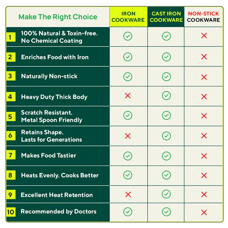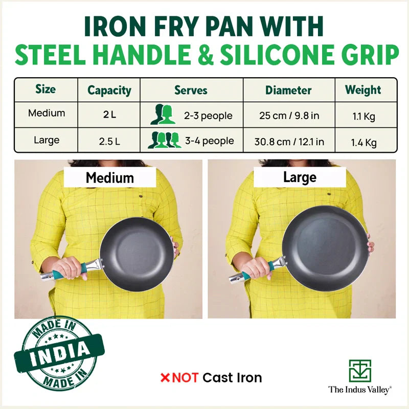 Ironklad 100% Pure Sheet Iron Frying pan, Steel Cool Touch Handle & Silicone Grip, Pre-seasoned, Toxin-free, Induction, 2/2.5 L, 25/30.8 Cm, 1.1/1.4 Kg