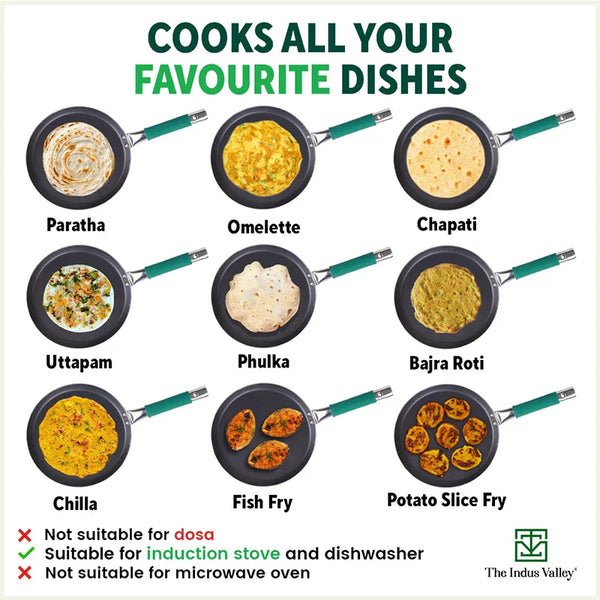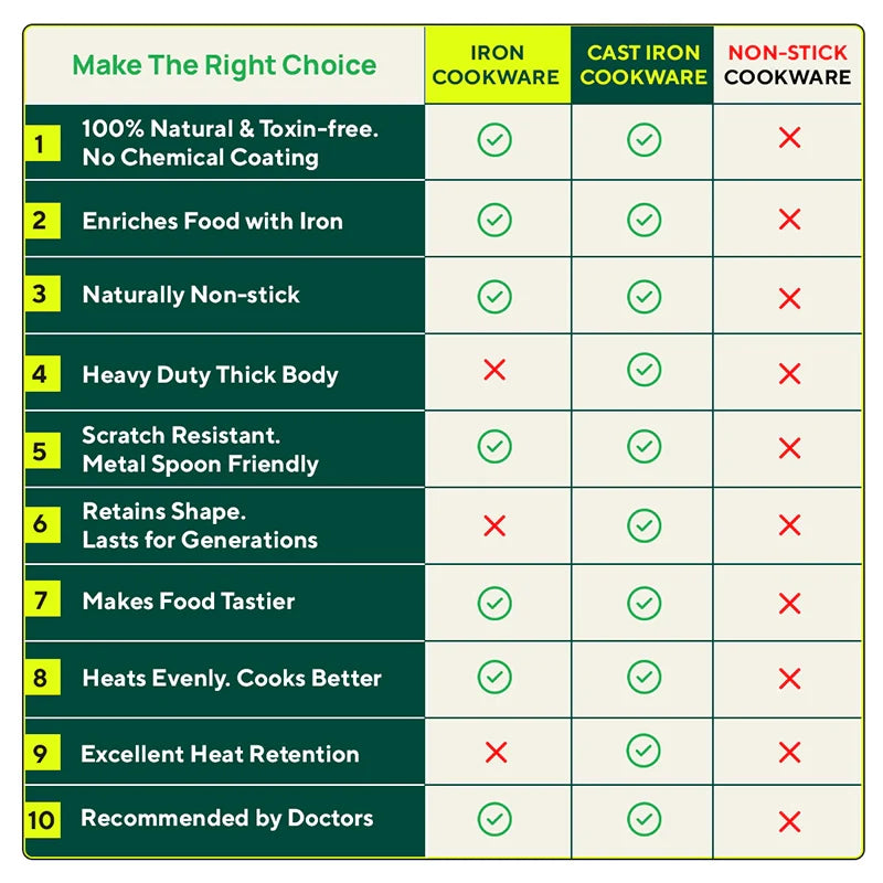 Ironklad 100% Pure Sheet Iron Tawa, Steel Cool Touch Handle & Silicone Grip, Pre-seasoned, Toxin-free, Induction, 26 cm, 1 Kg
