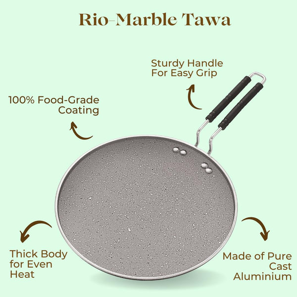 ivbox Rio-Marble Induction Base 300mm Non-Stick Multi-Purpose Aluminium Tawa, Grey (30cm, Induction and Gas Stove Compatible)