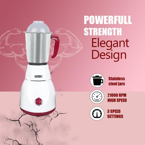Jaia Fusion Mixer Grinder 500-Watt Mixer Grinder with 3 Jars Liquidizing Wet Grinding and Chutney Jar Stainless Steel blades 1 Year Warranty