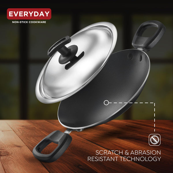 Judge by Prestige Everyday Appachatty with Lid 0.8 L Capacity 20 Cm Diameter (Aluminium|Non-Stick), Black