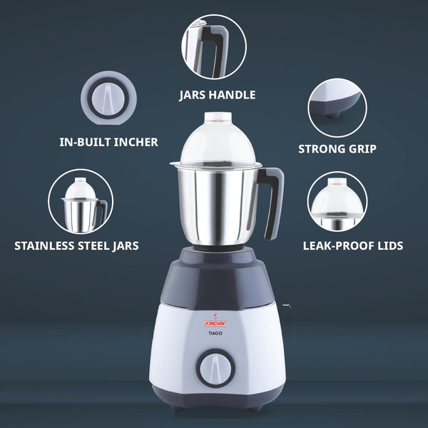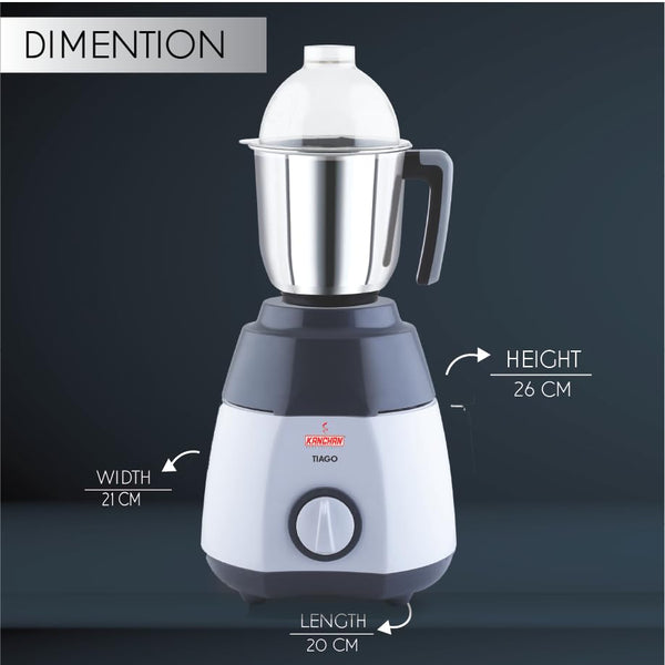 Kanchan Tiago Mixer Grinder (750W), 3 Multipurpose SS Jars | 3 Speed Control Heavy Duty Grinding | Overload Proctector With Shockproof ABS Body | Mixie For Kitchen with 5 Years Warranty On Motor