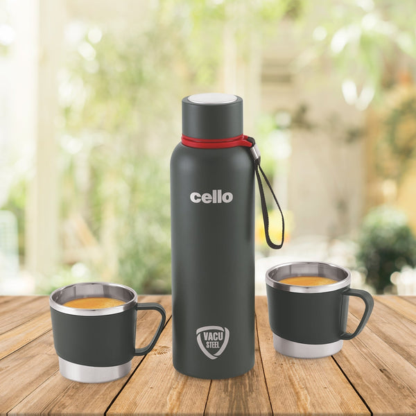 Kent Vacusteel Flask with Mugs Gift Set, 3 Pieces