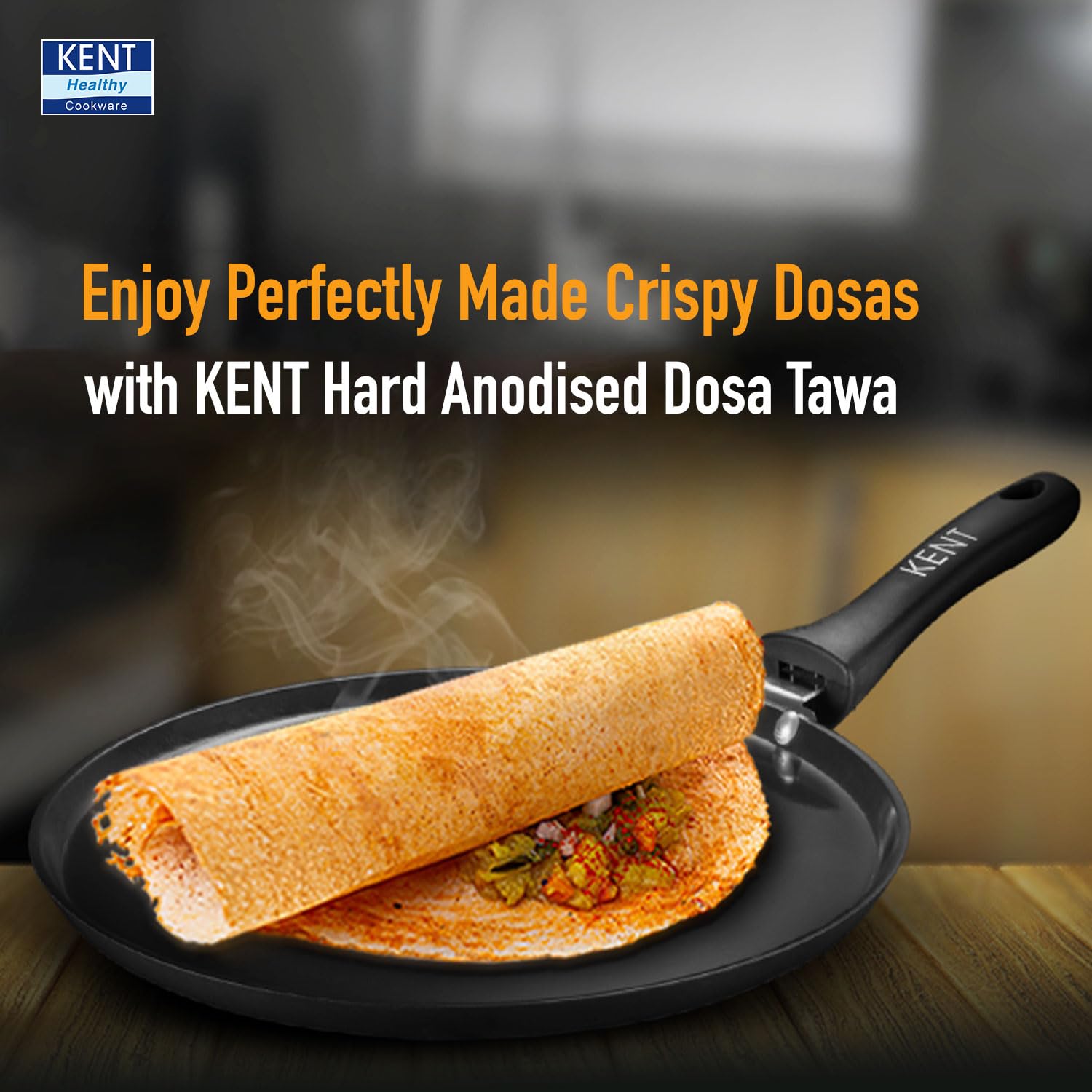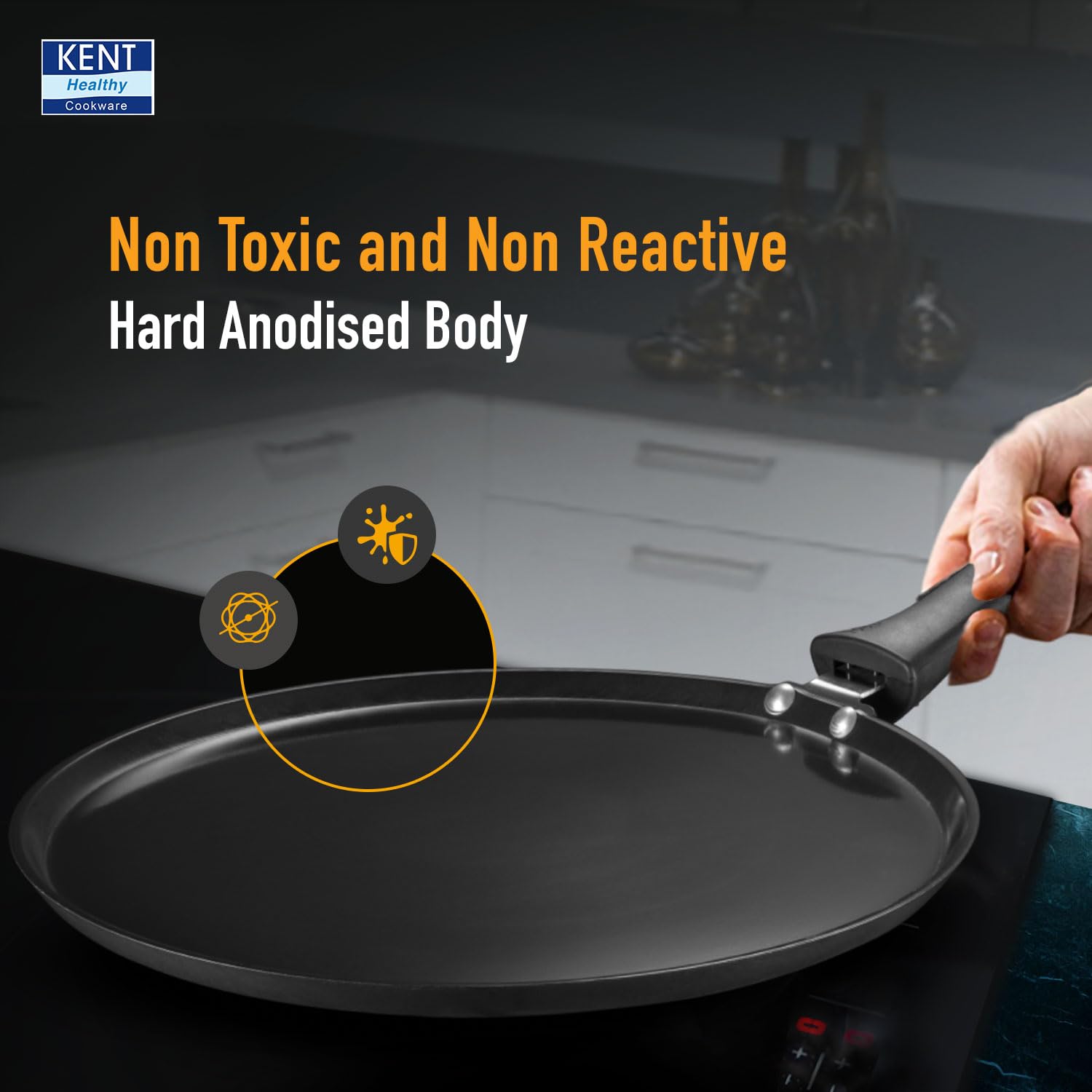KENT Hard Anodised Dosa Tawa 30 Cm | Non Reactive, Non Toxic, & Non Staining Food Grade Surface. | 4.88Mm Thick Base For Uniform Heating | Induction Friendly, Black