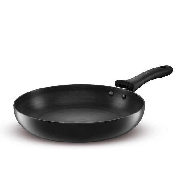 KENT Hard Anodised Frying Pan 22 CM | 1.4L | Non Reactive, Non Toxic, & Non Staining Food Grade Surface | 3.25mm Thick Base for Uniform Heating| Cool Touch Bakelite Handle | Induction Friendly, Black