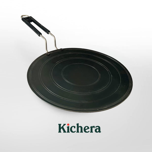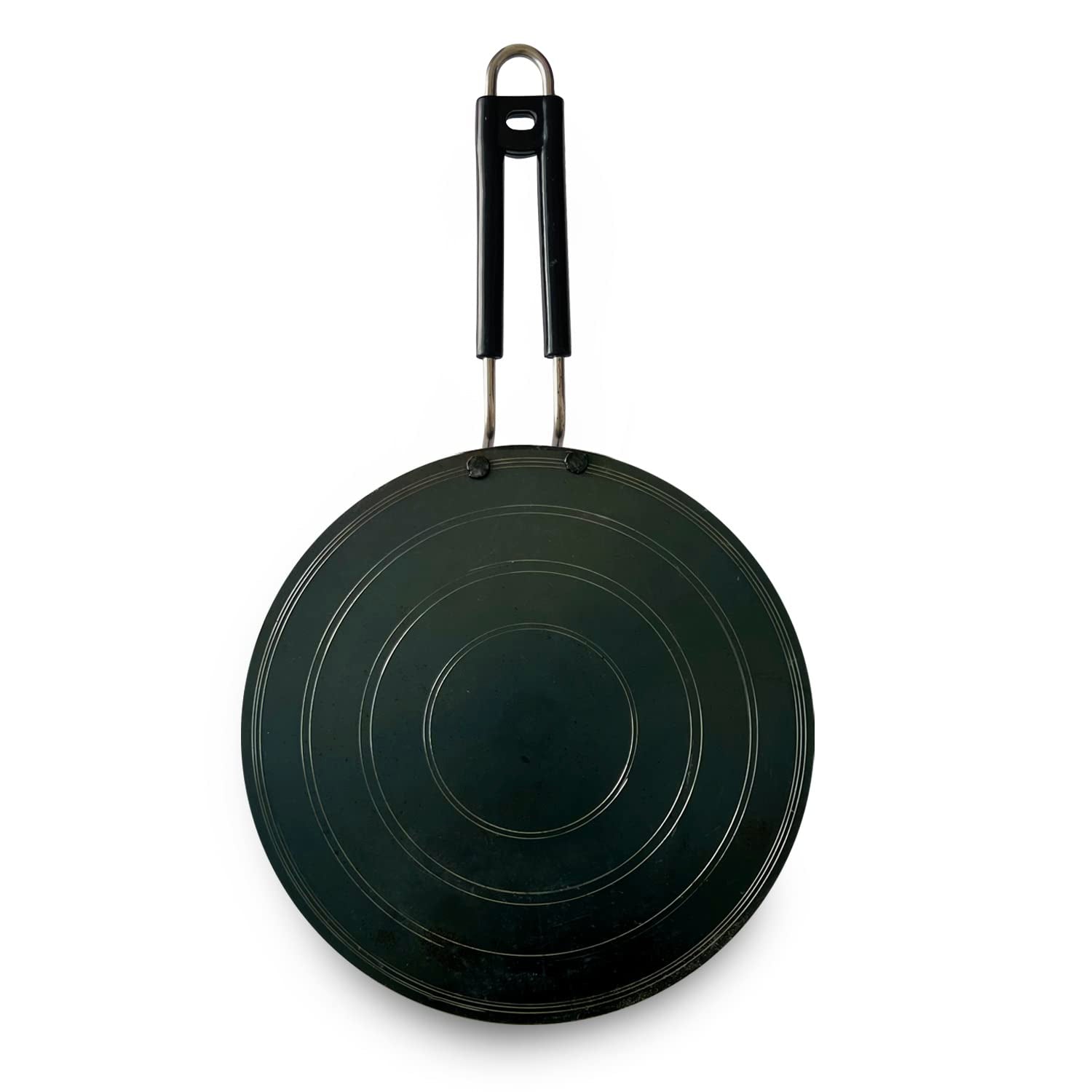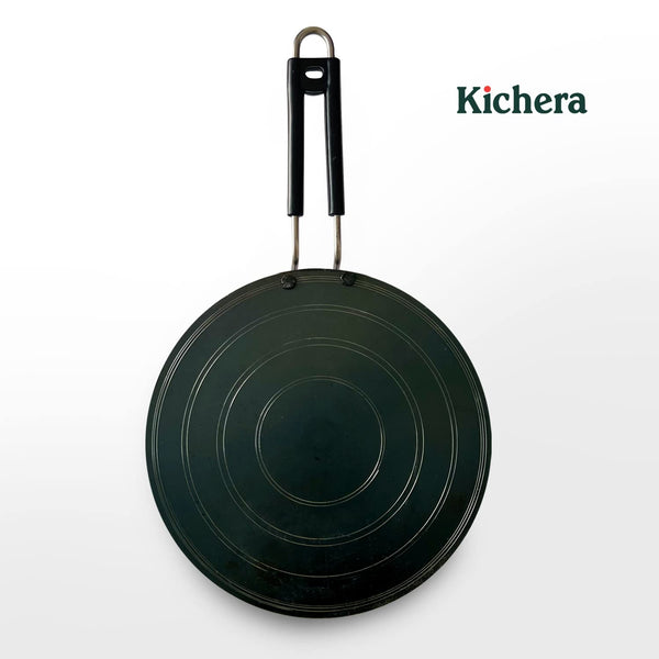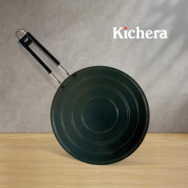 Kichera Traditional Iron Dosa Kal/Pure Iron Dosa Tawa with Stainless Steel Handle 28cm/11 inch, 1kg | Gas Stove and Induction Friendly | Pre-Seasoned Black Flat Iron Tawa