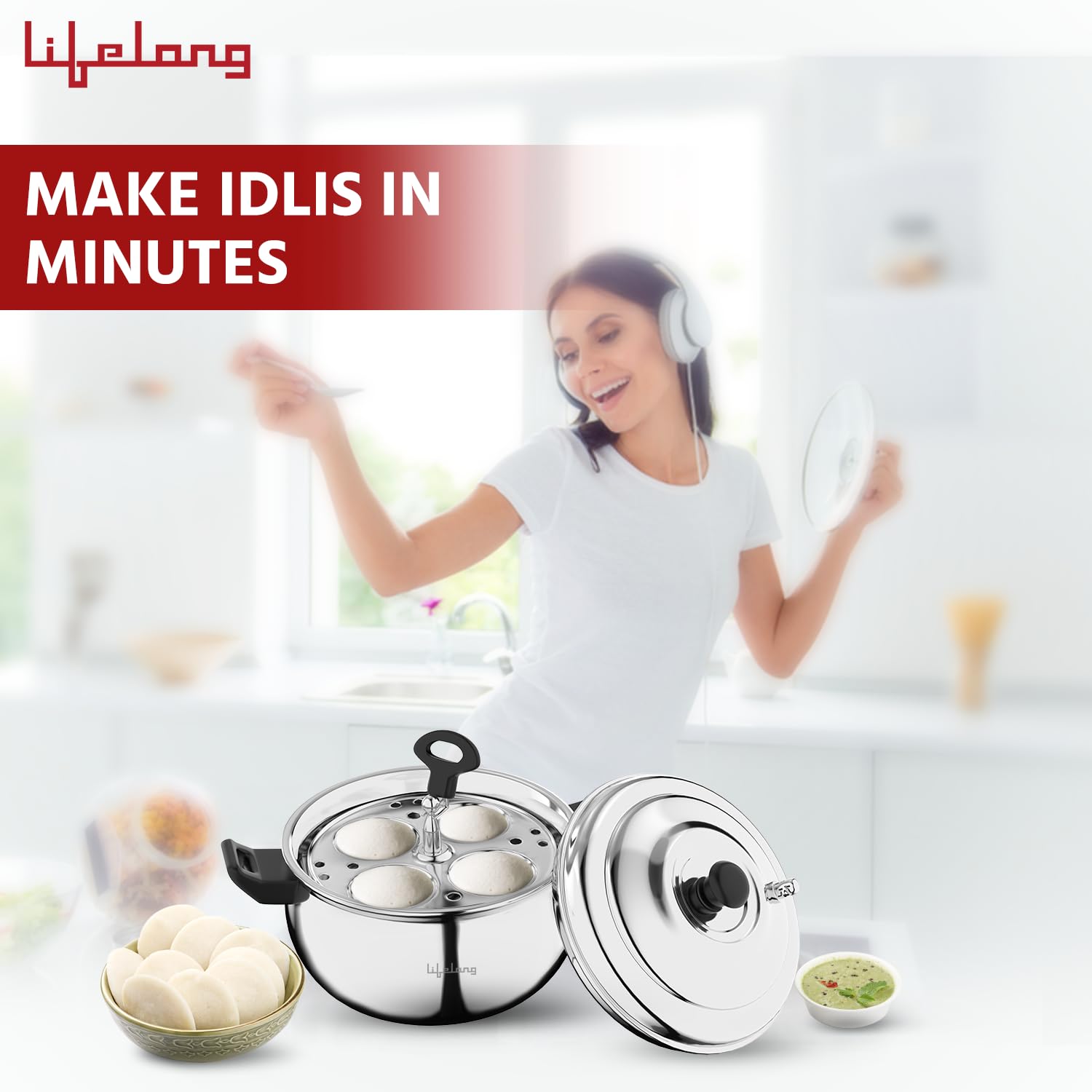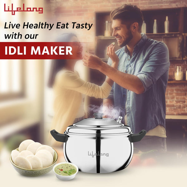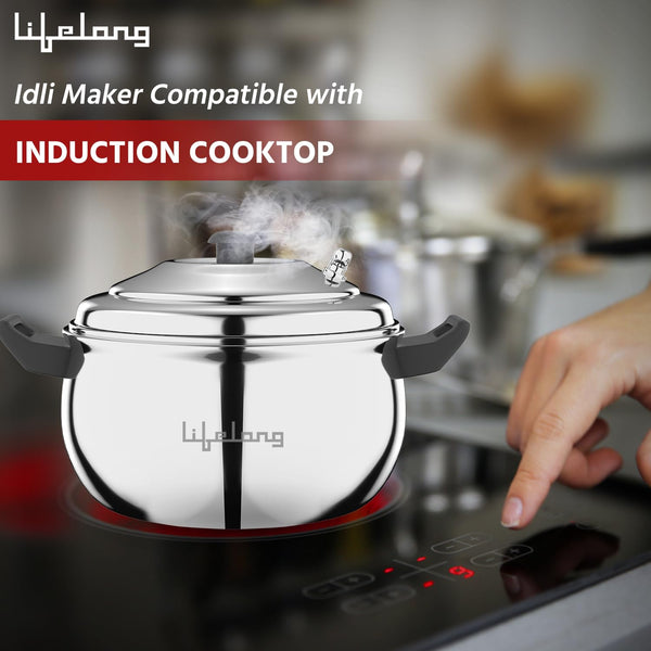 Lifelong Idli Cooker 3 Plate | 12 idlis | Stainless Steel Idli Cooker, Induction and Gas Stove Compatible Idli Maker (LLIDCKR03, Steel Silver)