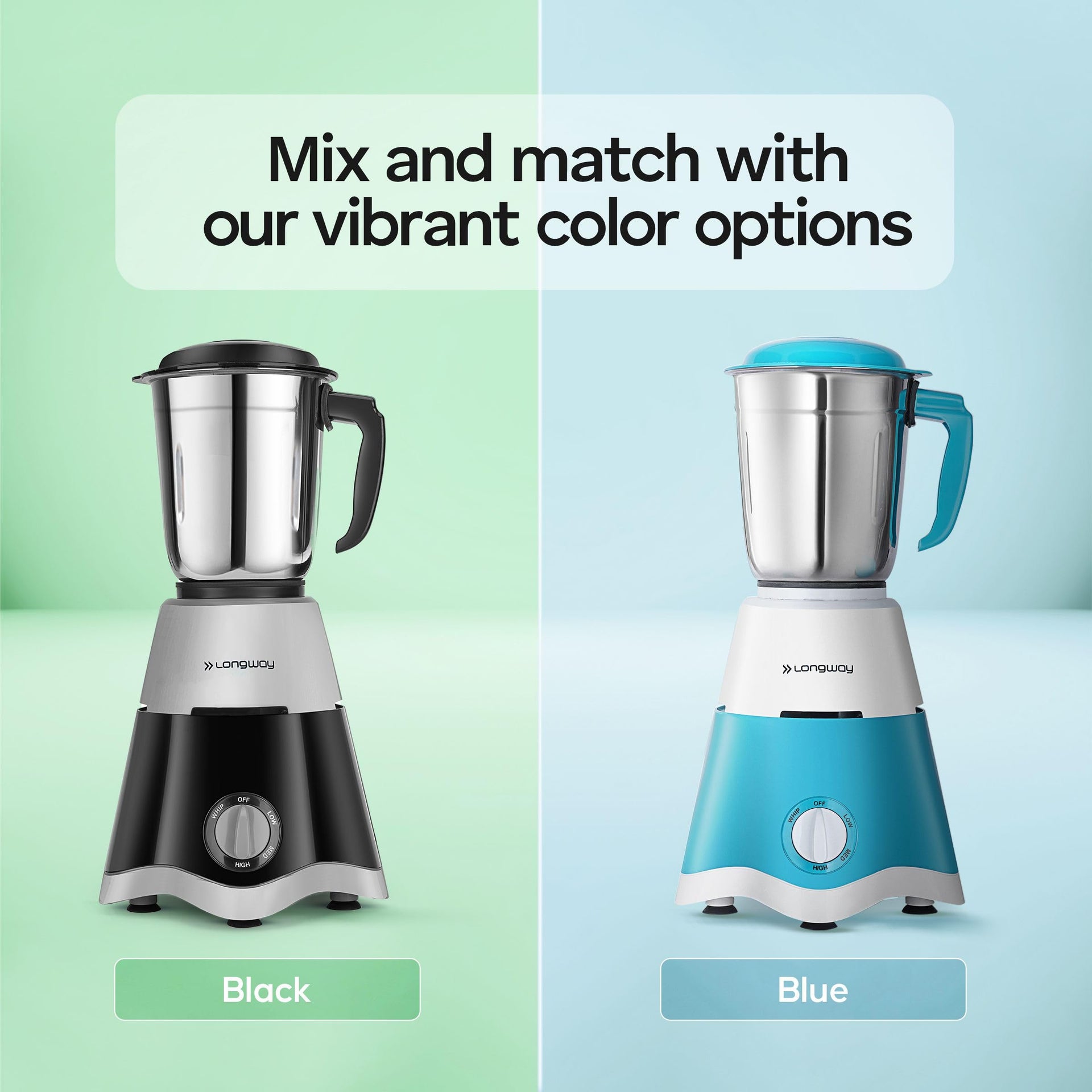 Longway Super Dlx 4 Jar 750 Watt Mixer Grinder - Black & Grey | ABS body | Heavy Duty Motor | Nano-grinding technology | 304 Grade Stainless Steel Blade | Noise levels 80-90 DB |1 Years warranty