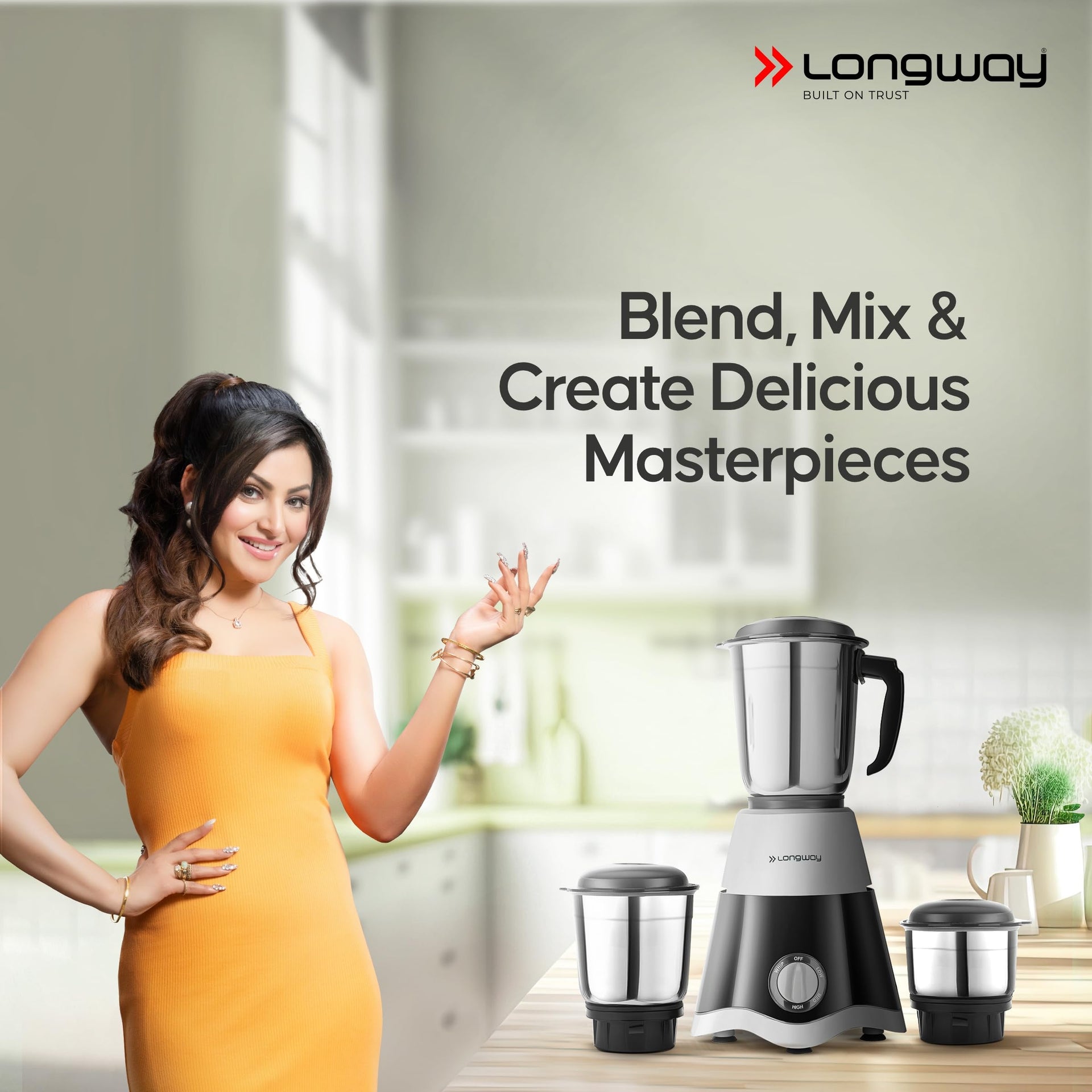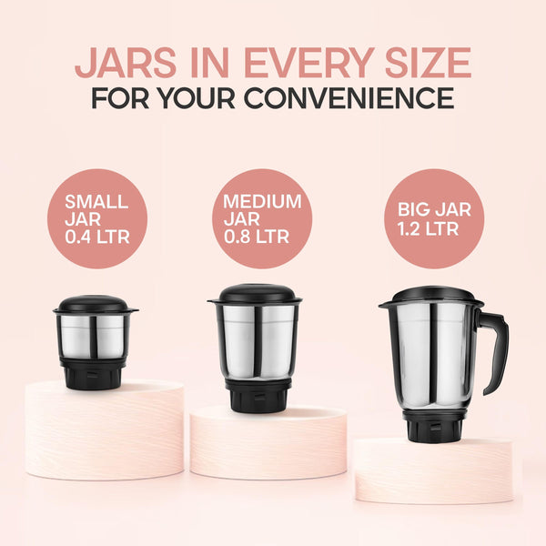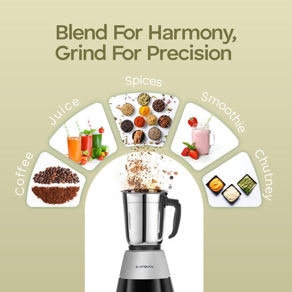 Longway Super Dlx 700 Watt Mixer Grinder with 3 Jars for Grinding, Mixing with Powerful Motor | 1 Year Warranty | (Black & Gray, 3 Jars)