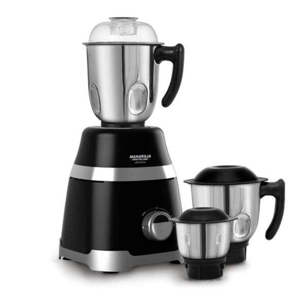 Maharaja Whiteline 1000 W Ultramax HD Mixer Grinder with3 Stainless Steel Jars | Copper Motor | Food Grade Safe | Superior Cooling | 5 Year Motor Warranty- MX-220 (Black with Chrome Finish)