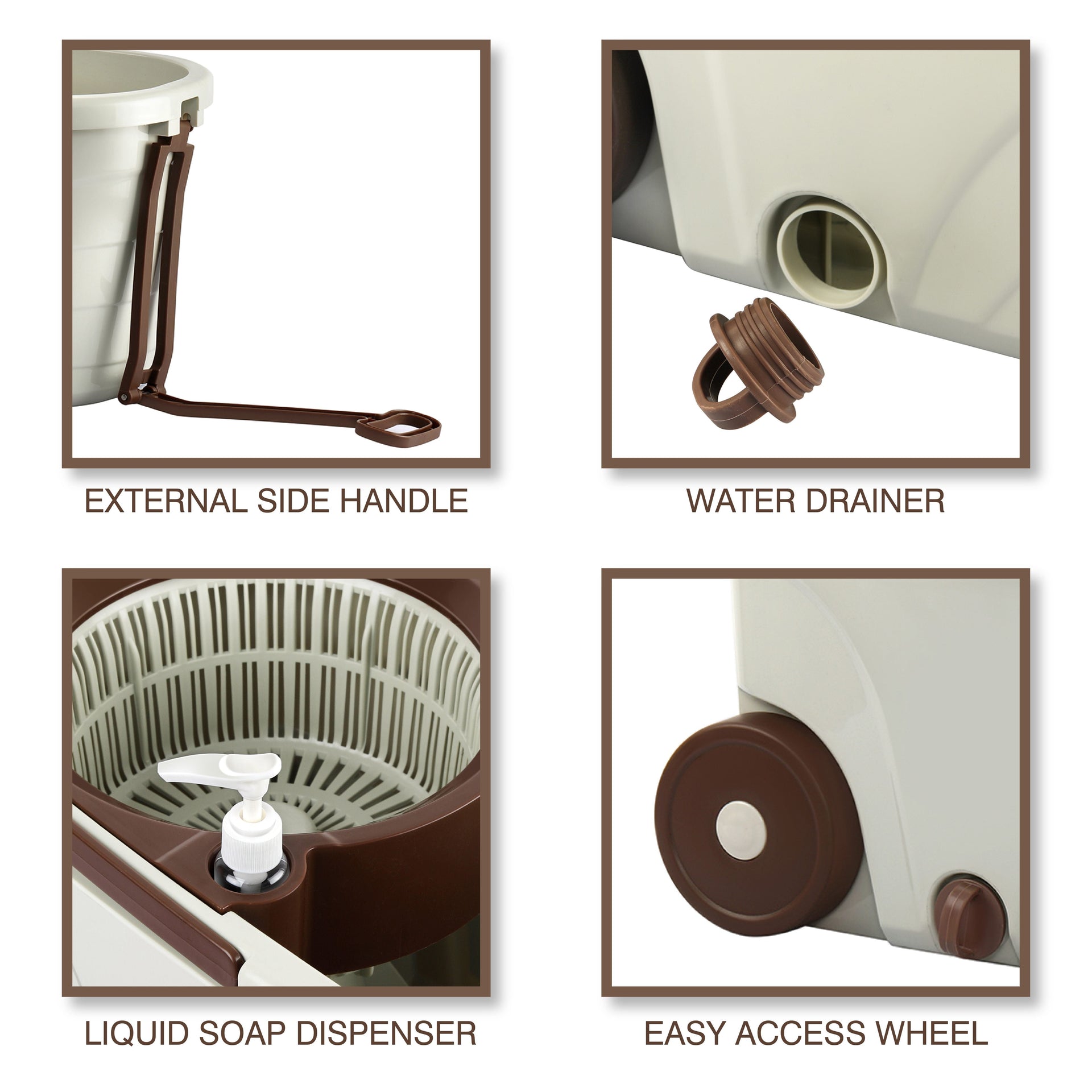 Kleeno Max Clean Deluxe Spin Mop Bucket with Soap Dispenser