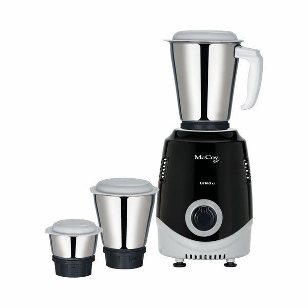 McCoy Mixer Grinder | Grind X1 500W with 3 SS jars | Longer life Universal Hybrid Motor | ABS Body | Uniform Grinding | Black & Grey
