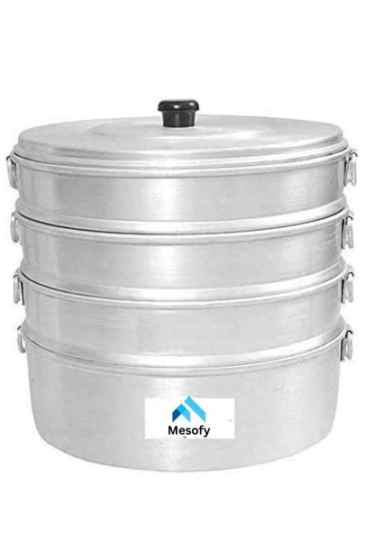 Mesofy Aluminium Momos Steamer Diamm: 8 Inch With 4 Tier Capacity 5 Litres, Silver
