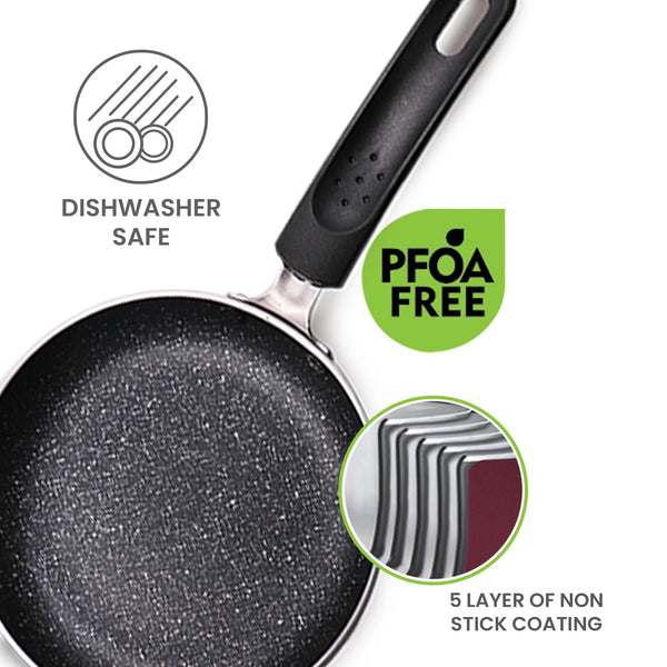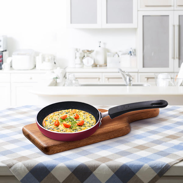 MILTON Pro cook Granito Non Induction Fry Pan, 14 cm, Burgundy, Flame Safe, Dishwasher Safe, Food Grade, Metal Spoon Friendly, Non - Stick, Bakelite Handle, 2 Years Warranty