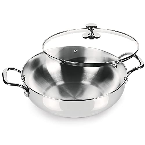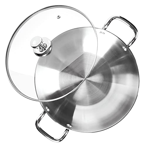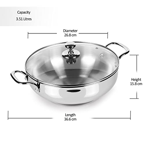 Milton Pro Cook Stainless Steel Sandwich Bottom Induction Kadhai with Glass Lid, 26 cm / 3.51 litres, Steel Plain | Dishwasher Safe | Flame Safe | Gas Stove Safe | Hot Plate Safe | SS Handle
