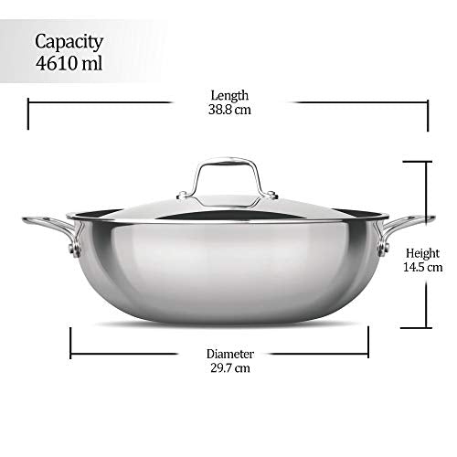 Milton Pro Cook Triply Stainless Steel Kadhai with Lid, 28 cm / 4.6 Litre