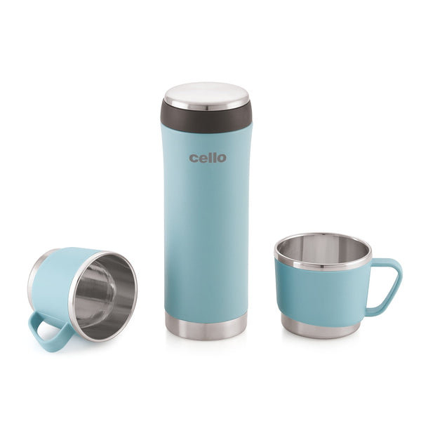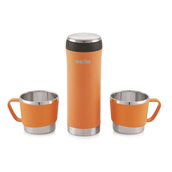 My Cup Vacusteel Flask with Mugs Gift Set, 3 Pieces