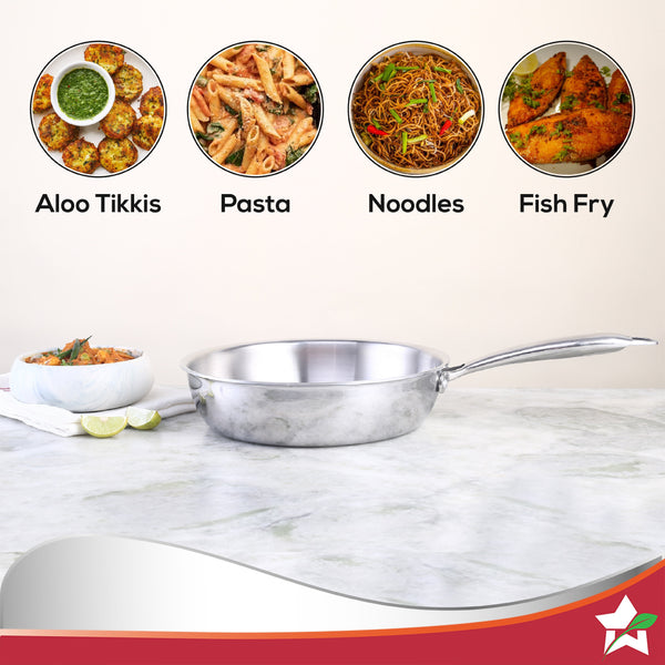 Nigella Tri-ply Stainless Steel 24 cm Fry Pan | 2 Litres | 2.5mm Thickness | With Induction base | Compatible with all cooktops | Riveted Cool-Touch Handle | 10 Year Warranty