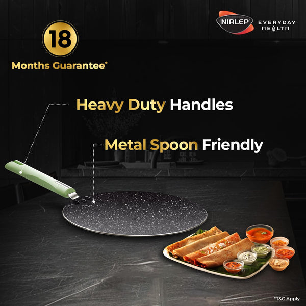 NIRLEP NutriHealth Dosa Tawa 32 cm I Patented Silver Ion Coating I Metal-Spoon Friendly I I Soft Touch Handle I Multi-Purpose Non-Stick Tawa for Dosa, Uttapam and Pancake I 18M Guarantee