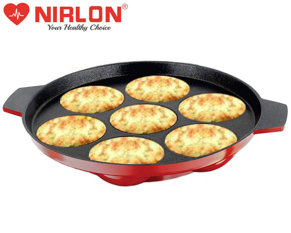 NIRLON Aluminium Non-Stick Kitchen Cooking Utensil Item Set of 2 Pieces Including Casting Uttapam-4 Cavity & Appam-7 Cavity