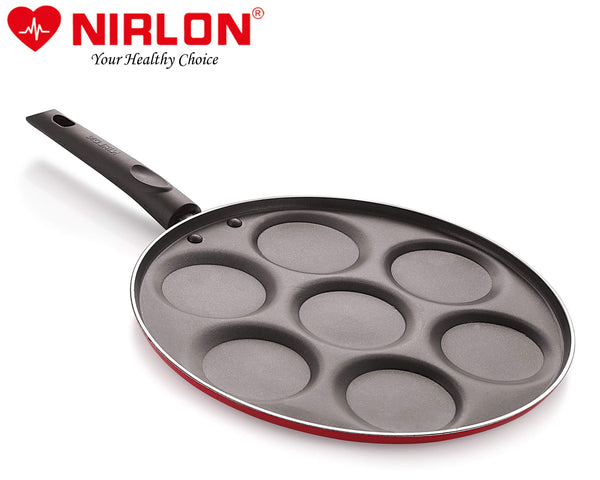 NIRLON Non Stick Aluminium 7 Cavity Appam/Uttapam/Pan Cake Maker Uttapam Tawawith Handle[New_26mm_Classic_UP7]