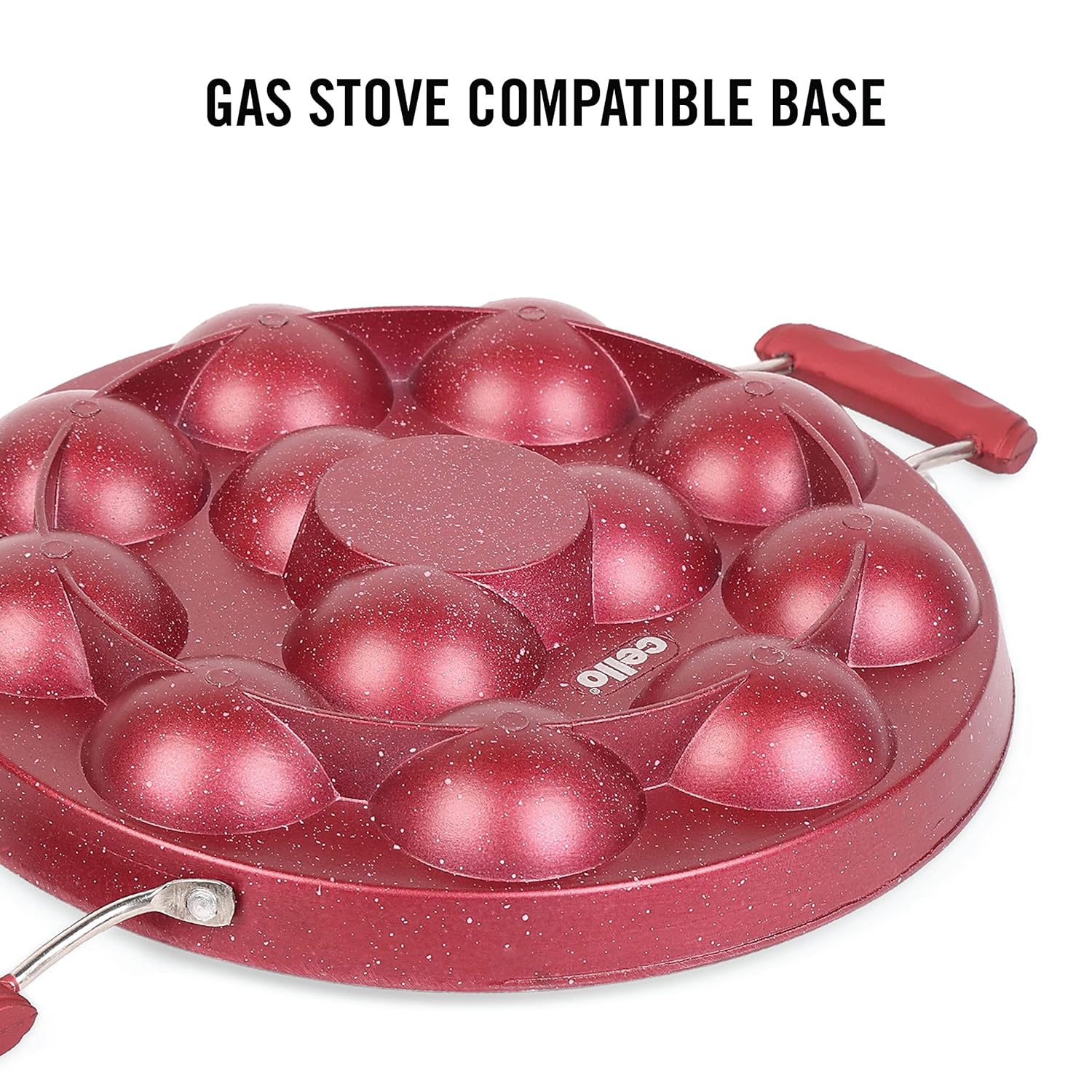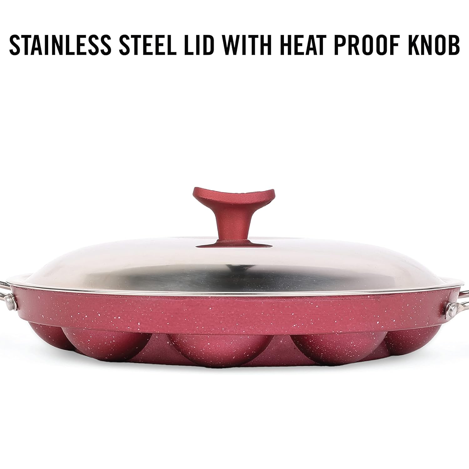 Non-Stick Crown 12 Cavity Appam Patra, Maroon