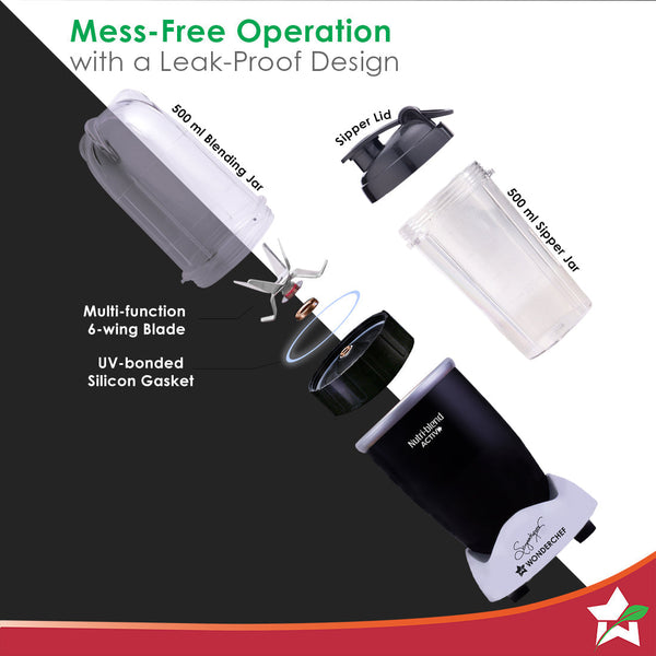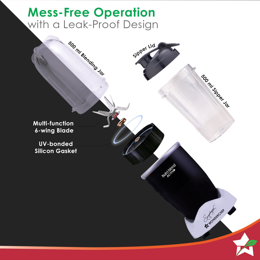 Nutri-blend Activ Mixer Grinder Blender, Smoothie Maker, 500W 22000 RPM 100% Full Copper Motor, 2 Unbreakable BPA Free Jars, SS Blades, 2 Year Warranty, Recipe book by Chef Sanjeev Kapoor, Black