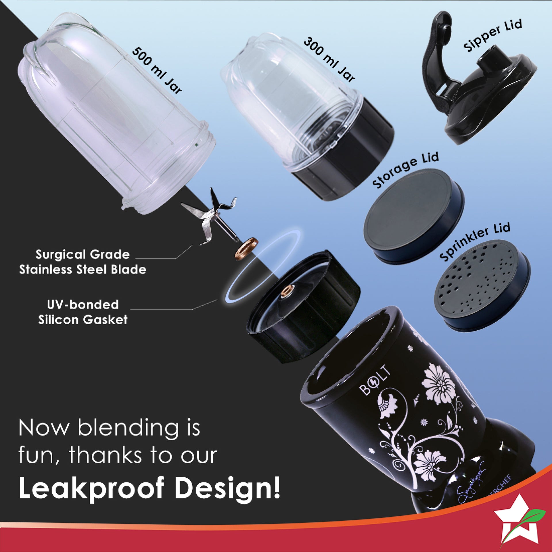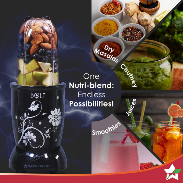 Nutri-blend BOLT Mixer, Grinder, Blender & Smoothie Maker | 600W 22000 RPM 100% Full Copper Motor | Stainless steel Blades | 2 unbreakable jars with Sipper lid | 2 Year warranty | Recipe book by Chef Sanjeev Kapoor | Black