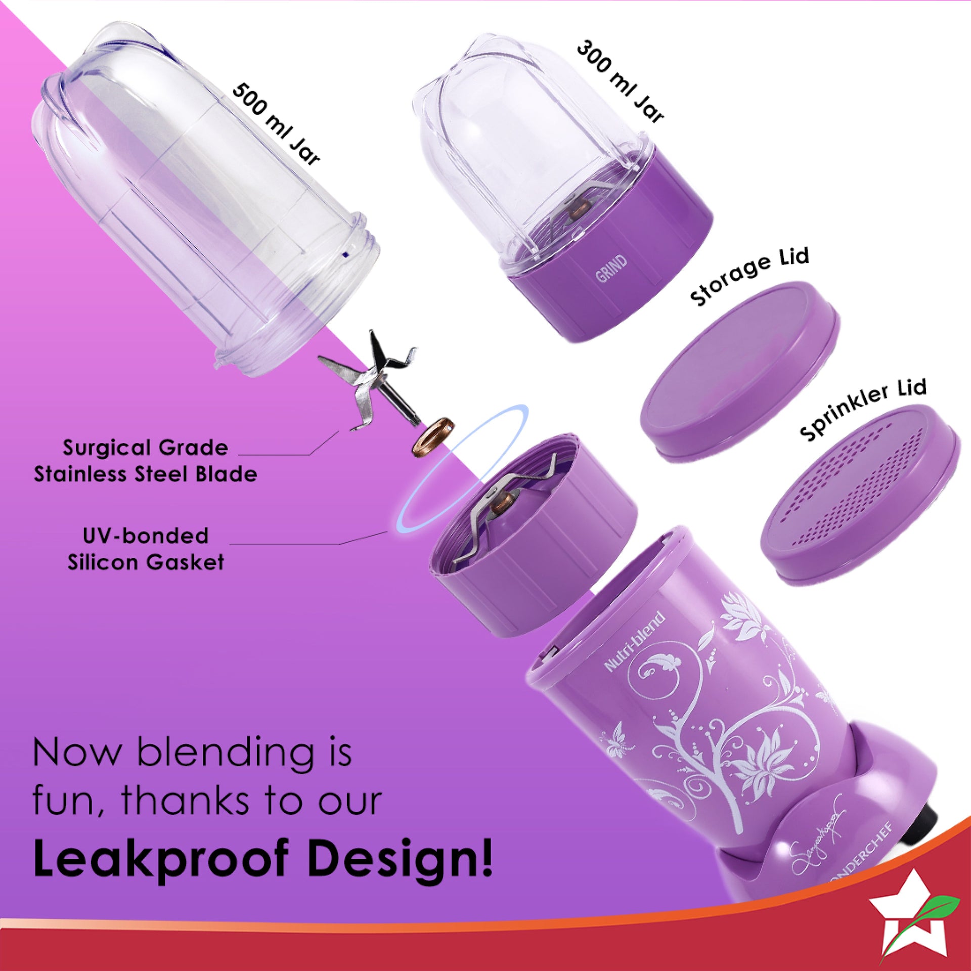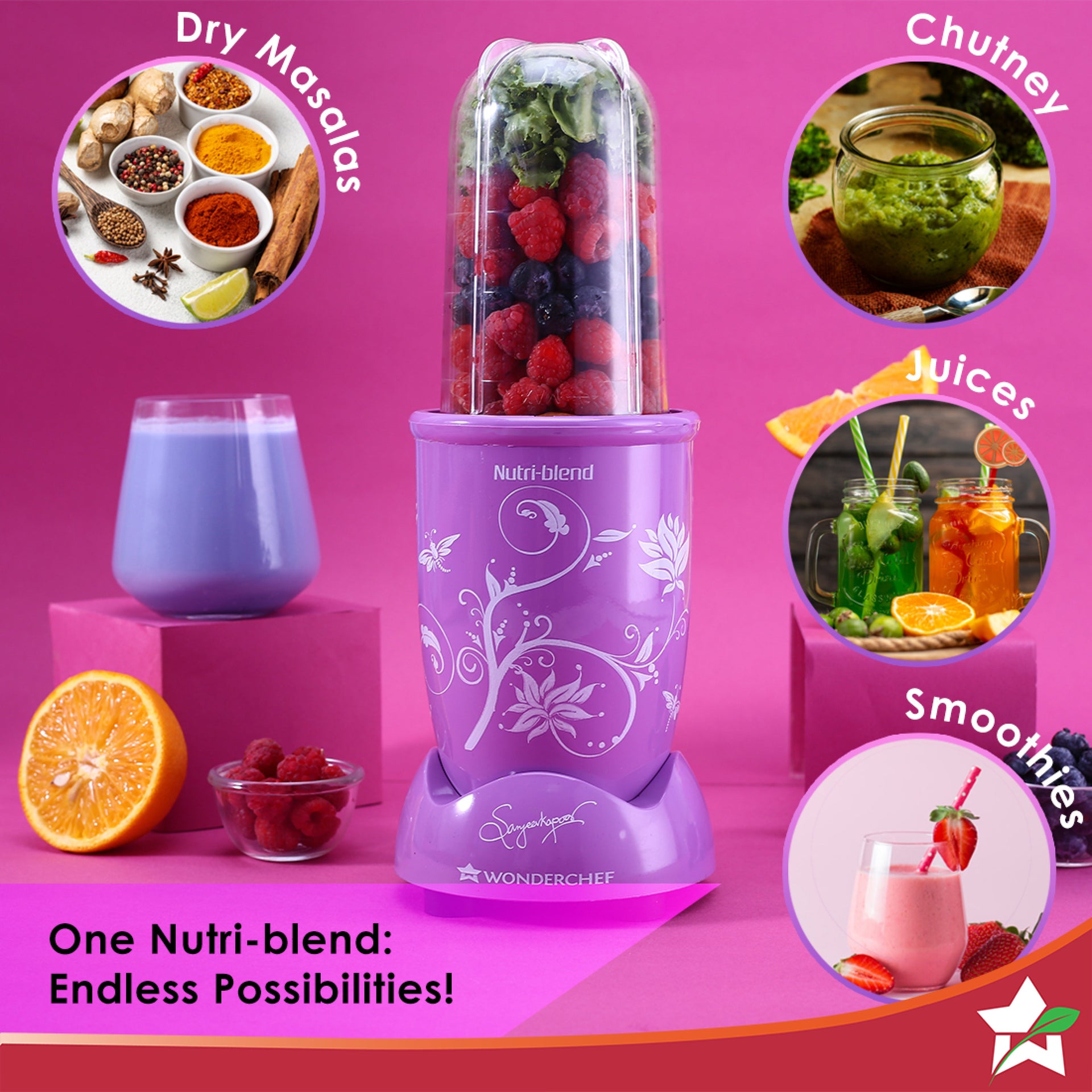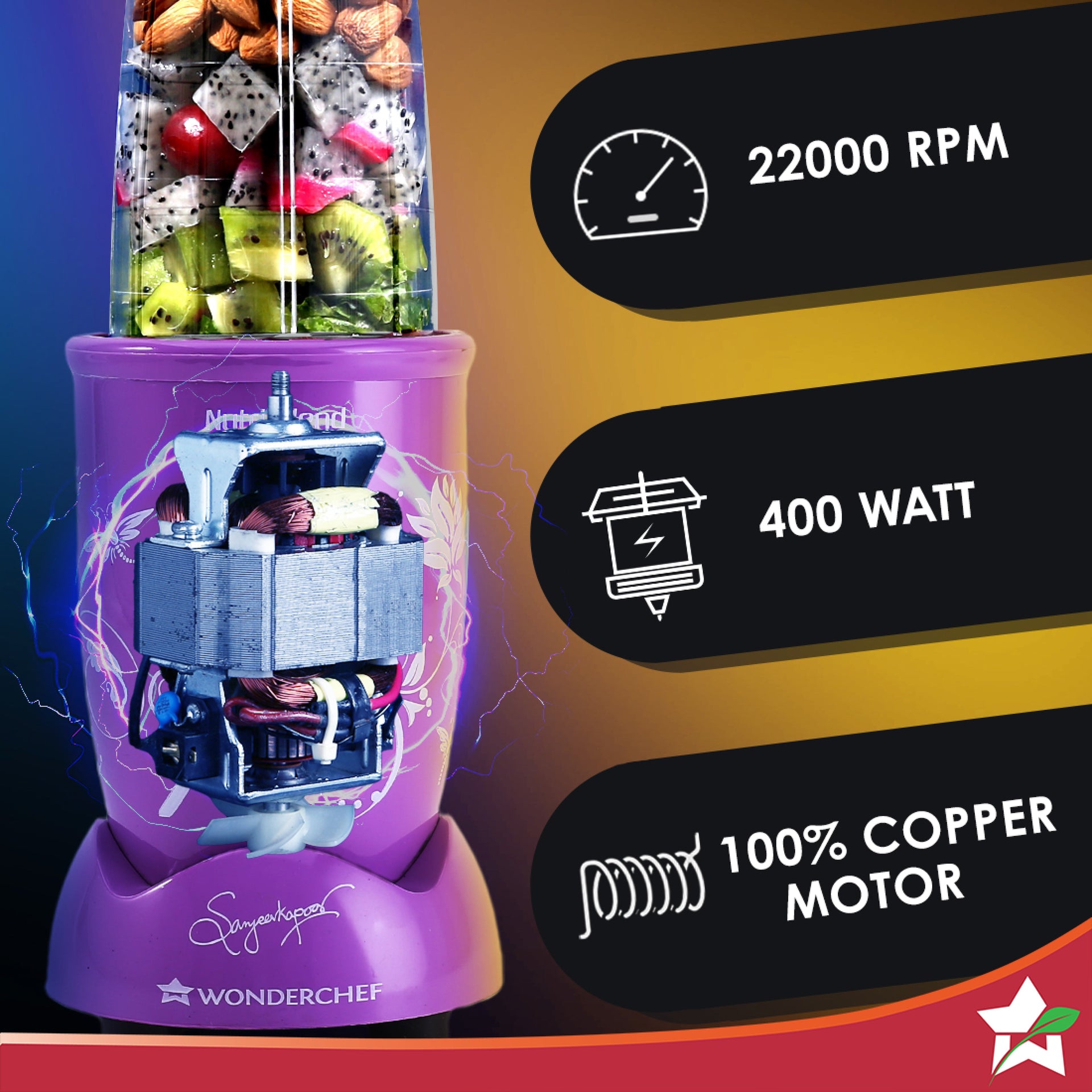 Nutri Blend Orchid, 22000 RPM 100% Full Copper Motor, 2 Unbreakable Jars, 400 W, 2 Years Warranty, Recipe book by Chef Sanjeev Kapoor, Orchid