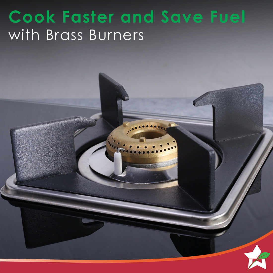 Octavia 4 Burner Glass Hob Top Auto Cooktop | 8mm Toughened Glass | Auto Ignition | Forged Brass Burners | Stainless Steel Drip Tray | Anti-Skid Legs | Large & Heavy Pan support | LPG compatible | Black steel frame | 2 Year Warranty | Black