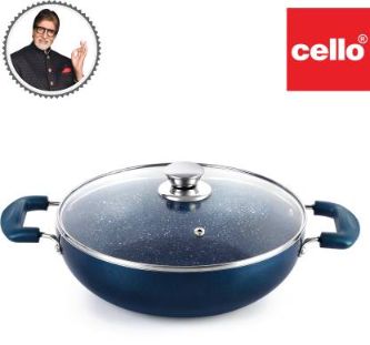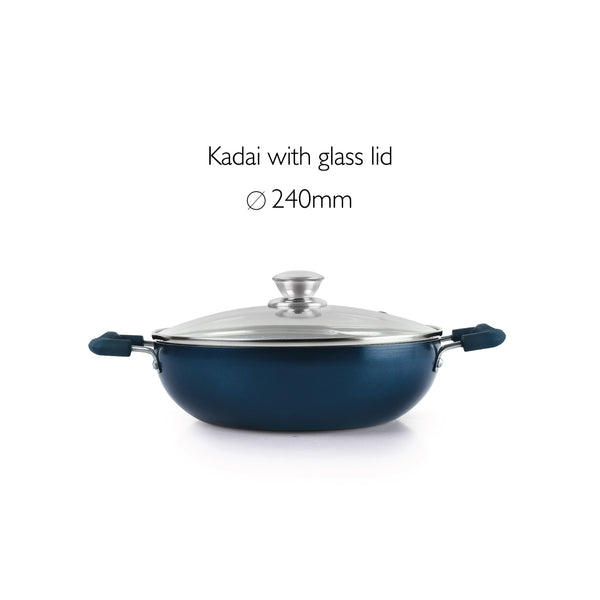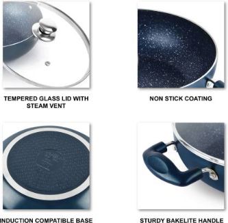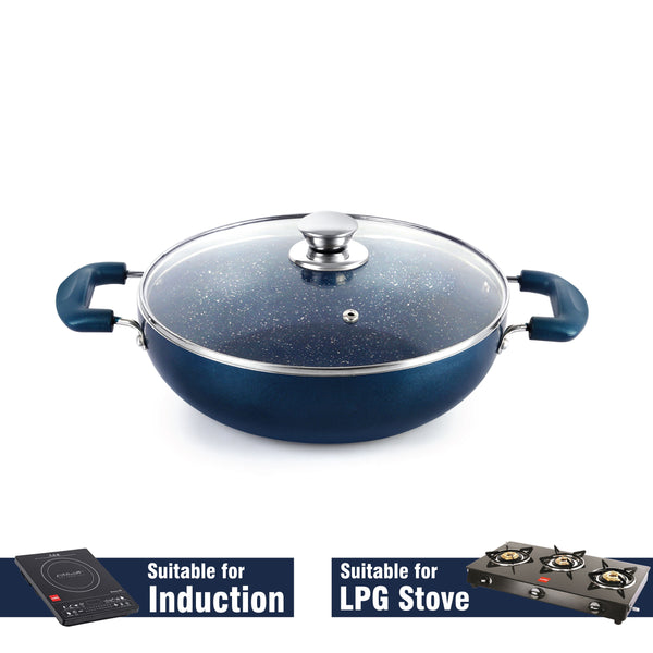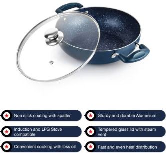 Oxford Non-Stick Induction Base Kadhai with Glass Lid, 3 Litres