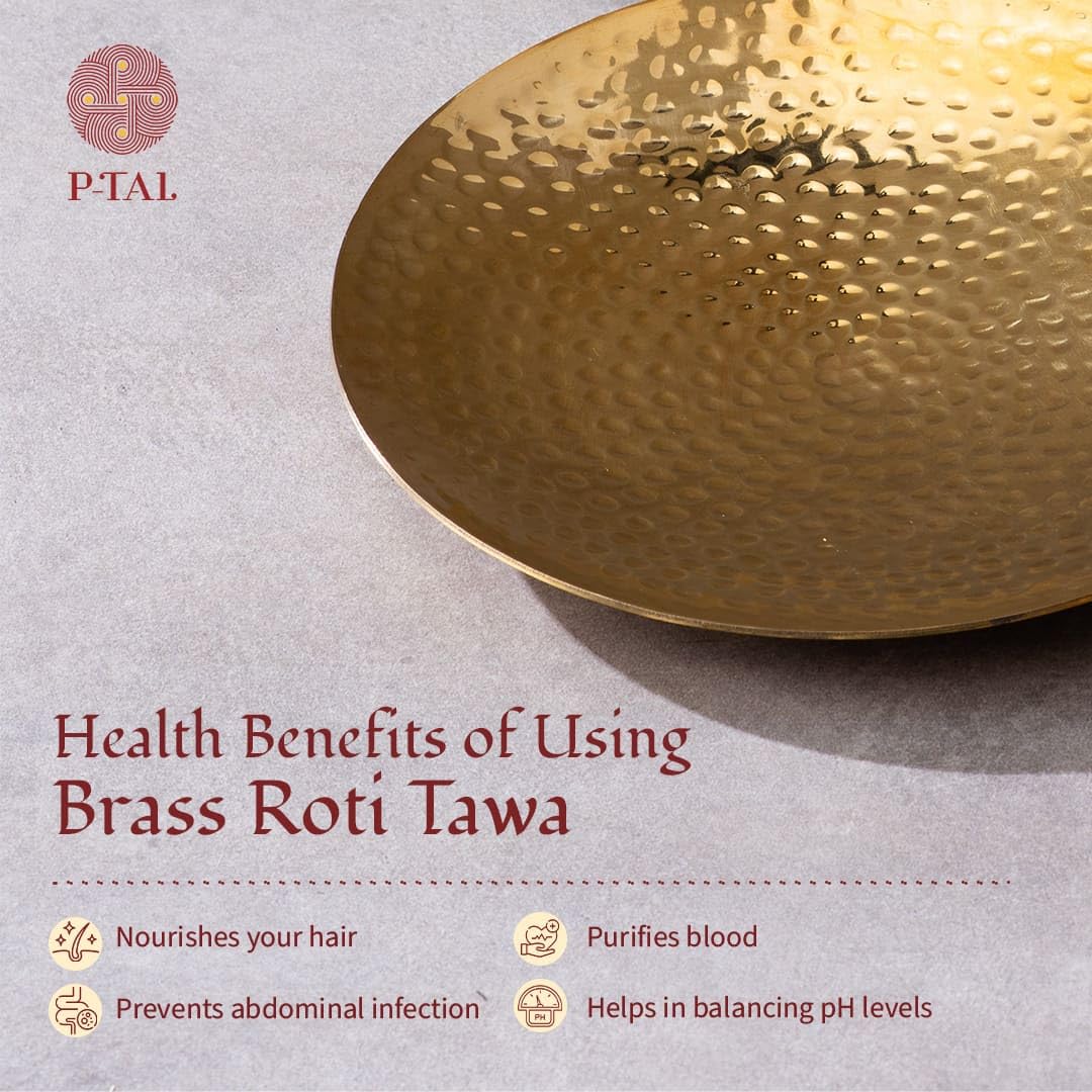 P-TAL Brass Roti Tawa 26cm Teflon Free Non-Toxic Tawa for Roti with PVC Handle Ptal Brass Utensils