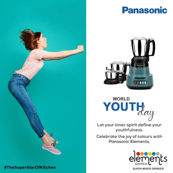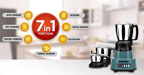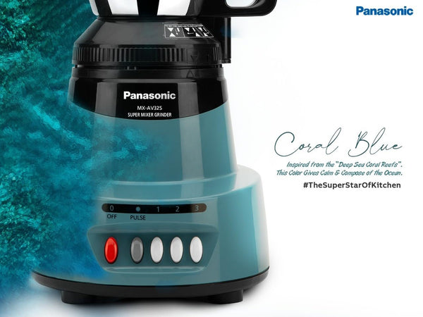 Panasonic 1500W Mixer Grinder with 3 Stainless Steel Jars set, (Coral Blue) MX-AV325 | Elements Series With SS304 Grade Stainless Steel Blade