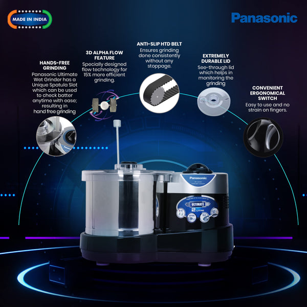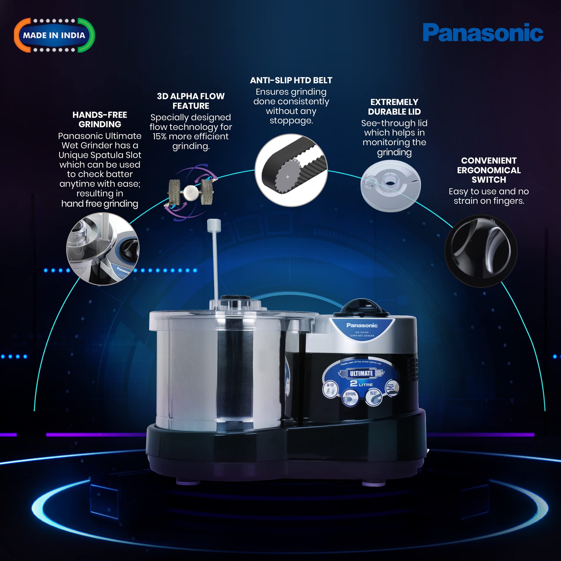 Panasonic MK-GW260 (Black) | Super Wet Grinder | Capacity 2 Ltr | without Timer | Warranty 2 Years Product & 5 Years On Motor