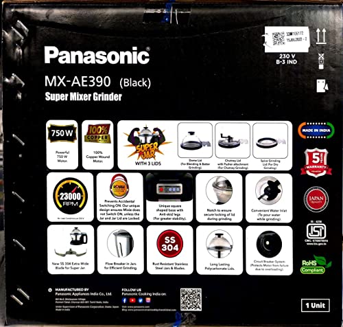 Panasonic MX-AE390 (Black) Monster Super Mixer Grinder 750W With 3 Jar